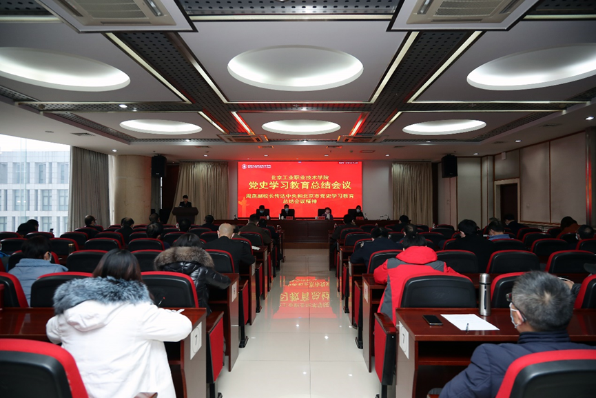 1月21日下午,北京工業(yè)職業(yè)技術(shù)學(xué)院召開黨史學(xué)習(xí)教育總結(jié)會議,深入學(xué)習(xí)貫徹習(xí)近平總書記的重要指示和中央、北京市黨史學(xué)習(xí)教育總結(jié)會議精神,全面總結(jié)回顧學(xué)校黨史學(xué)習(xí)教育開展情況,部署鞏固拓展黨史學(xué)習(xí)教育成果,把學(xué)習(xí)貫徹黨的十九屆六中全會精神不斷引向深入。北京教育系統(tǒng)第四指導(dǎo)組組長馬誼平、成員陳瑜到會指導(dǎo)。學(xué)校領(lǐng)導(dǎo)班子全體成員,學(xué)校黨史學(xué)習(xí)教育領(lǐng)導(dǎo)小組成員、校內(nèi)指導(dǎo)組成員、全體中層干部、黨支部書記、團總支書記出席會議。學(xué)校黨委書記、黨史學(xué)習(xí)教育領(lǐng)導(dǎo)小組組長高喜軍作黨史學(xué)習(xí)教育總結(jié)講話,黨委副書記、院長安江英主持會議。