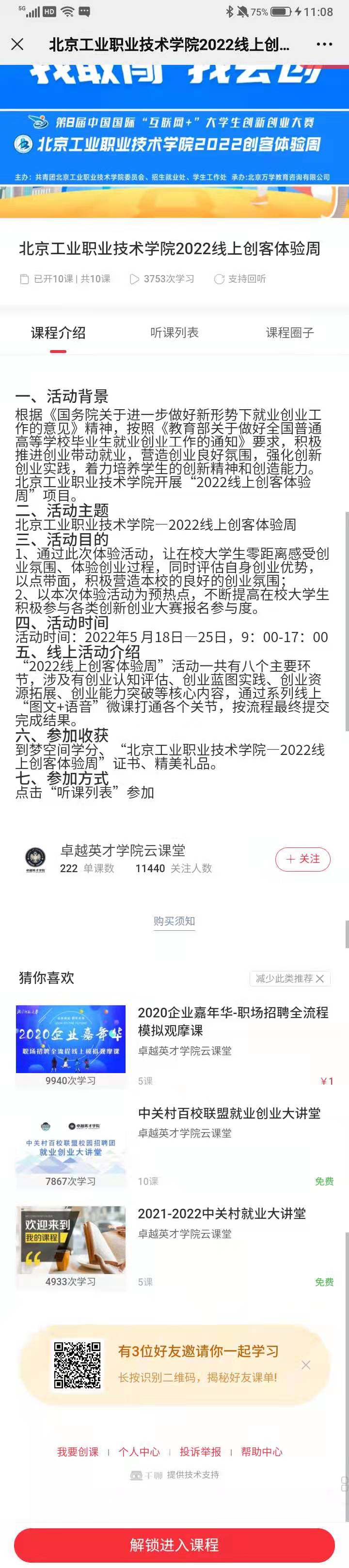 在訓(xùn)練營(yíng)開(kāi)營(yíng)期間植入了“我敢闖、我會(huì)創(chuàng)”主題“創(chuàng)客體驗(yàn)周”活動(dòng)。體驗(yàn)周活動(dòng)面向全校學(xué)生,采用線上的形式開(kāi)展。創(chuàng)業(yè)體驗(yàn)周是為培養(yǎng)學(xué)生的創(chuàng)新精神和創(chuàng)造能力而舉辦的創(chuàng)業(yè)體驗(yàn)活動(dòng),同學(xué)們完成所有體驗(yàn)活動(dòng)通關(guān)后能獲得創(chuàng)業(yè)體驗(yàn)周證書,同時(shí)獲得學(xué)校“第二課堂”學(xué)分。