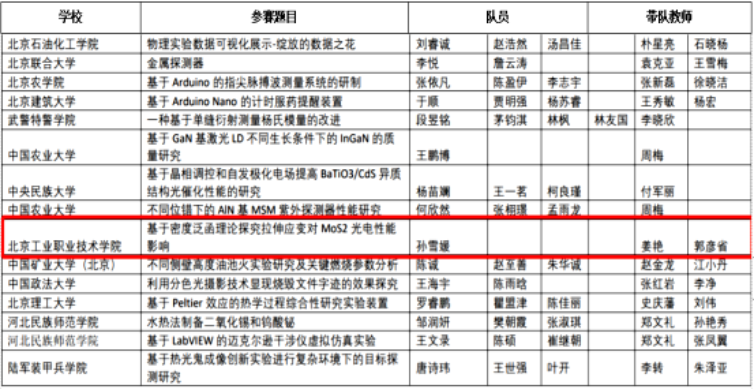 近日,由北京市教育委員會主辦、北京交通大學承辦的“第十四/十五屆(2021、2022年度)北京市大學生物理實驗競賽”,以線上線下結合的方式舉行。參賽隊均來自北京本科高校,我校為唯一一所高職院校參賽.在學校和基礎學院領導全力支持下,由物理教研室精心組織兩支代表隊龐晨雨(網絡1971)、劉川(網絡1971),孫雪媛(建工2031)成功參賽,并獲得兩項北京市三等獎。