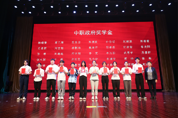 黨委書記田紅芳為“國家獎學金、國家勵志獎學金和中職政府獎學金”獲得者頒獎