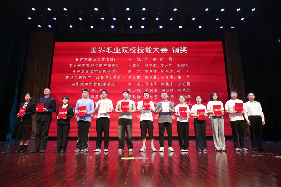 黨委副書記、院長柳長安為“2024年世界職業院校技能大賽獲獎團隊”“中國國際大學生創新大賽(2024)”獲獎團隊頒獎
