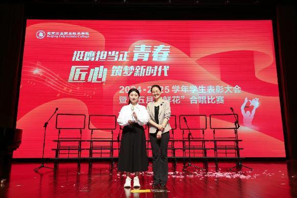 為深入學習貫徹習近平新時代中國特色社會主義思想,落實習近平總書記在全國教育大會上的重要講話精神,表彰先進、樹立榜樣,營造表彰育人、典禮育人的良好氛圍,激勵廣大青年學子勇擔時代使命,5 月 30 日中午,學校隆重舉行“挺膺擔當正青春、匠心筑夢新時代 ”2024-2025 學年學生表彰大會暨 “五月的鮮花”合唱比賽。黨委書記田紅芳,黨委副書記、院長柳長安等全體校領導,相關職能部門負責人、各二級學院班子成員、全體班主任輔導員、師生代表、學生青馬班學員齊聚一堂,共同見證這一青春盛會。大會由校團委書記鄭興主持。