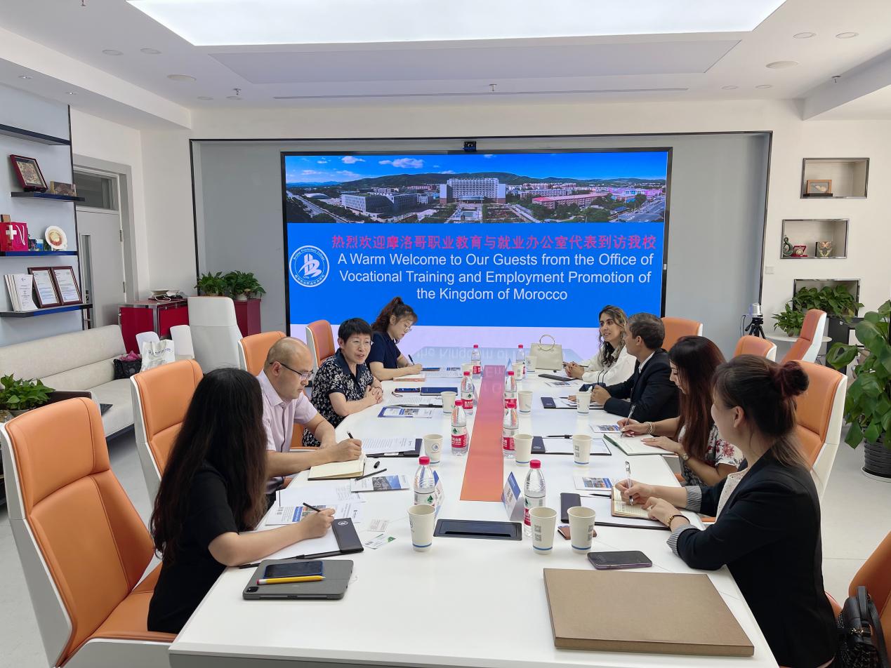 8月21日下午,摩洛哥國家職業教育與就業發展辦公室區域主任阿卜杜拉欣·米夫達爾先生、區域主任侯達·本馬祖茲女士、美亞區域國際合作主任哈拉·本薩基爾女士代表團一行3人在中北非國際教育創新聯盟秘書長陳璐的陪同下到我校進行交流訪問。我校黨委常委、副院長周燕在匠心樓三層國際處會議室親切會見了來訪客人。我校國際交流合作處處長孟晴、副處長謝麗杲及國際處相關人員等一同參加了會見。