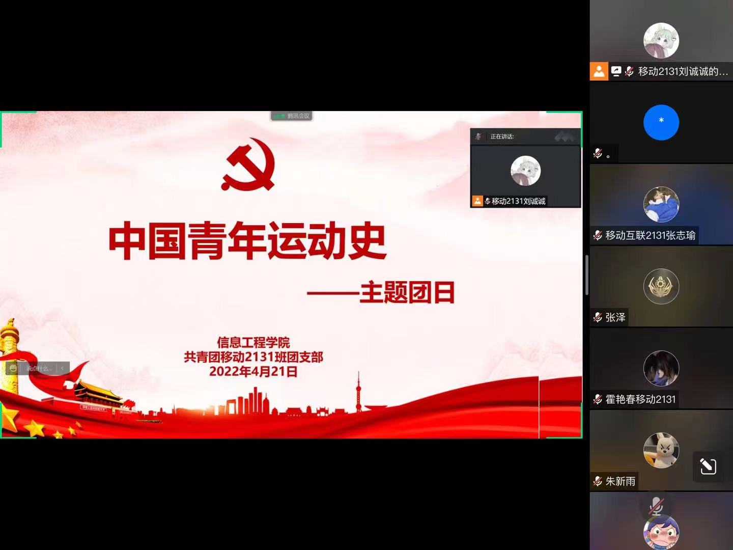 信息工程學院團總支組織開展“黨的青年運動史”線上專題學習。本次專題活動由各班團支書帶領同學們學習在中國共產黨領導下廣大青年在革命、建設、改革不同歷史時期接續奮斗、建功立業的事跡。通過專題講解學習,激勵青年堅定跟黨走的決心,高揚愛國主義旗幟,堅持永久奮斗、不懈奮斗的精神氣質。信息工程學院團總支副書記王新宇同學表示:通過學習黨的青年運動史,我感受到一定要努力學習科學文化知識,在踏入社會之后回報祖國、社會和家庭。