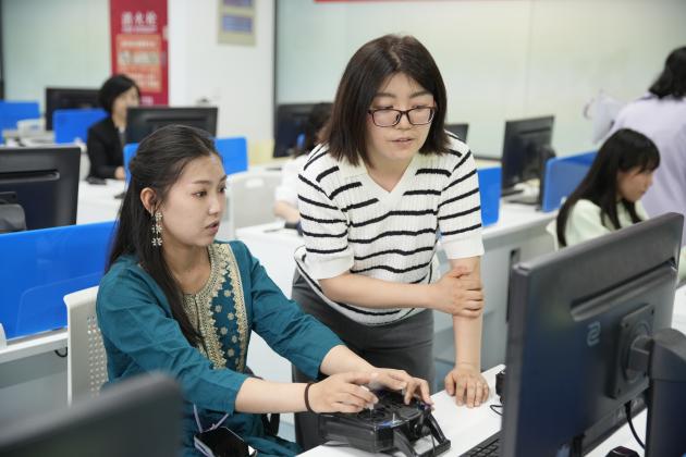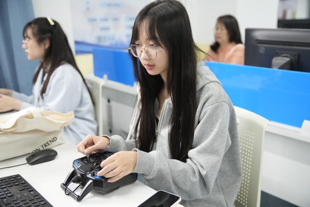北語(yǔ)國(guó)際學(xué)生們聚精會(huì)神參與無(wú)人機(jī)模擬飛行實(shí)操訓(xùn)練