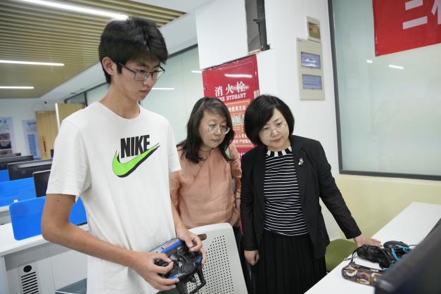 6月7日下午,北京語(yǔ)言大學(xué)國(guó)際學(xué)生在北京語(yǔ)言大學(xué)應(yīng)用中文學(xué)院院長(zhǎng)蘇英霞和專(zhuān)業(yè)系主任吳霄岳、特殊項(xiàng)目負(fù)責(zé)人魏耕耘、孫小晶等老師的帶領(lǐng)下到我校參加了職業(yè)技能課程的學(xué)習(xí)和體驗(yàn)。我校國(guó)際交流合作處處長(zhǎng)孟晴、干事王瀛等共同接待了來(lái)校師生。