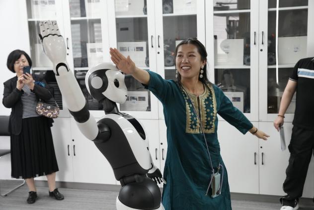 北語(yǔ)國(guó)際學(xué)生同機(jī)器人共舞
