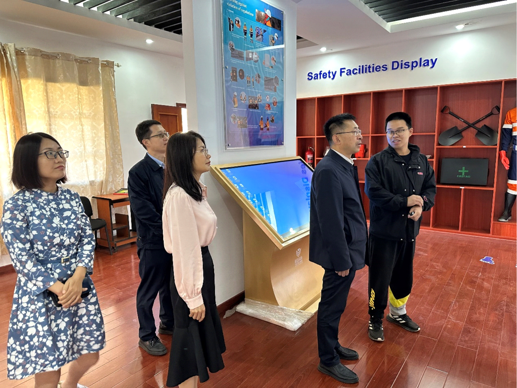 團組走訪了部分中國有色集團在贊企業,柳長安院長在中色非洲有限礦業公司黨委副書記、紀委書記徐來祥和辦公室主任陸軍主任的陪同下,參觀了中色非礦培訓中心教室和實訓室,包括企業特色項目井下駕駛模擬訓、VR仿真安全培訓等。座談中徐來祥書記希望借鑒中贊職院模式,在企業員工培養、師資培訓、教學資源開發方面加強校企合作,雙方就具體合作模式和細節進行了探討。在中贊經貿合作區,公司副總經理崔海亮帶領團組參觀了展廳,詳細介紹了中國有色集團在贊比亞發展的沿革和歷史。