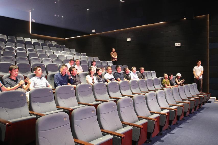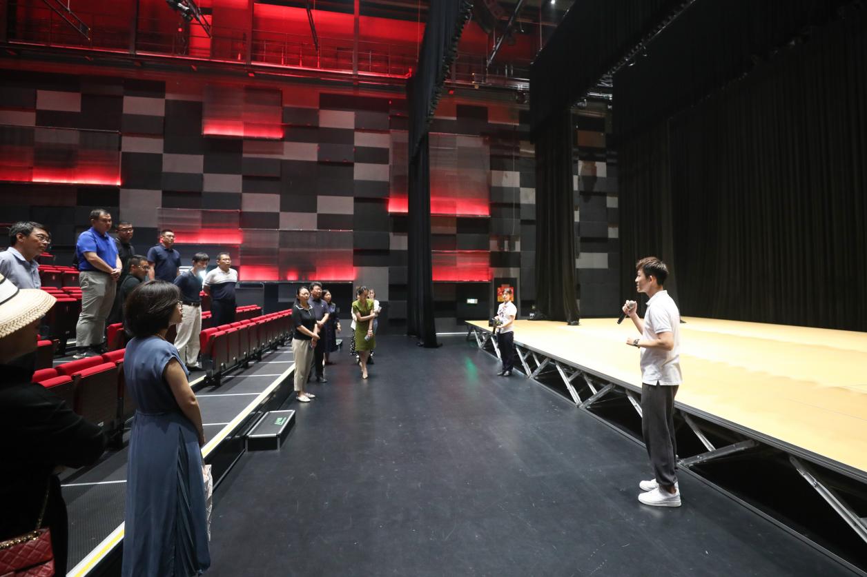 調研組首先來到北影校園總體規劃沙盤展廳,志愿者為大家介紹北京電影學院懷柔新校區的總體規劃、設計理念、分期建設等情況。隨后,調研組實地走訪了懷柔新校區的影廳、千人劇場、黑匣子劇場、動畫學院工作室、數字媒體學院攝影棚等場所。