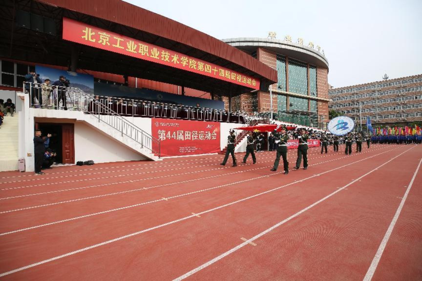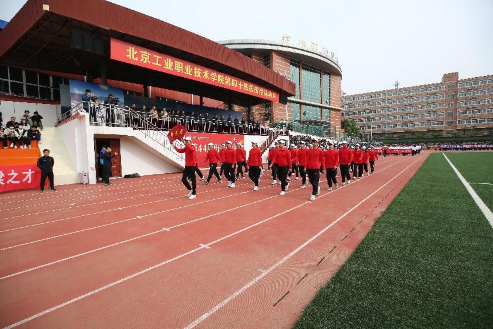 莊嚴(yán)的升旗儀式后,黨委書記高喜軍宣布北京工業(yè)職業(yè)技術(shù)學(xué)院第44屆田徑運動會開幕。