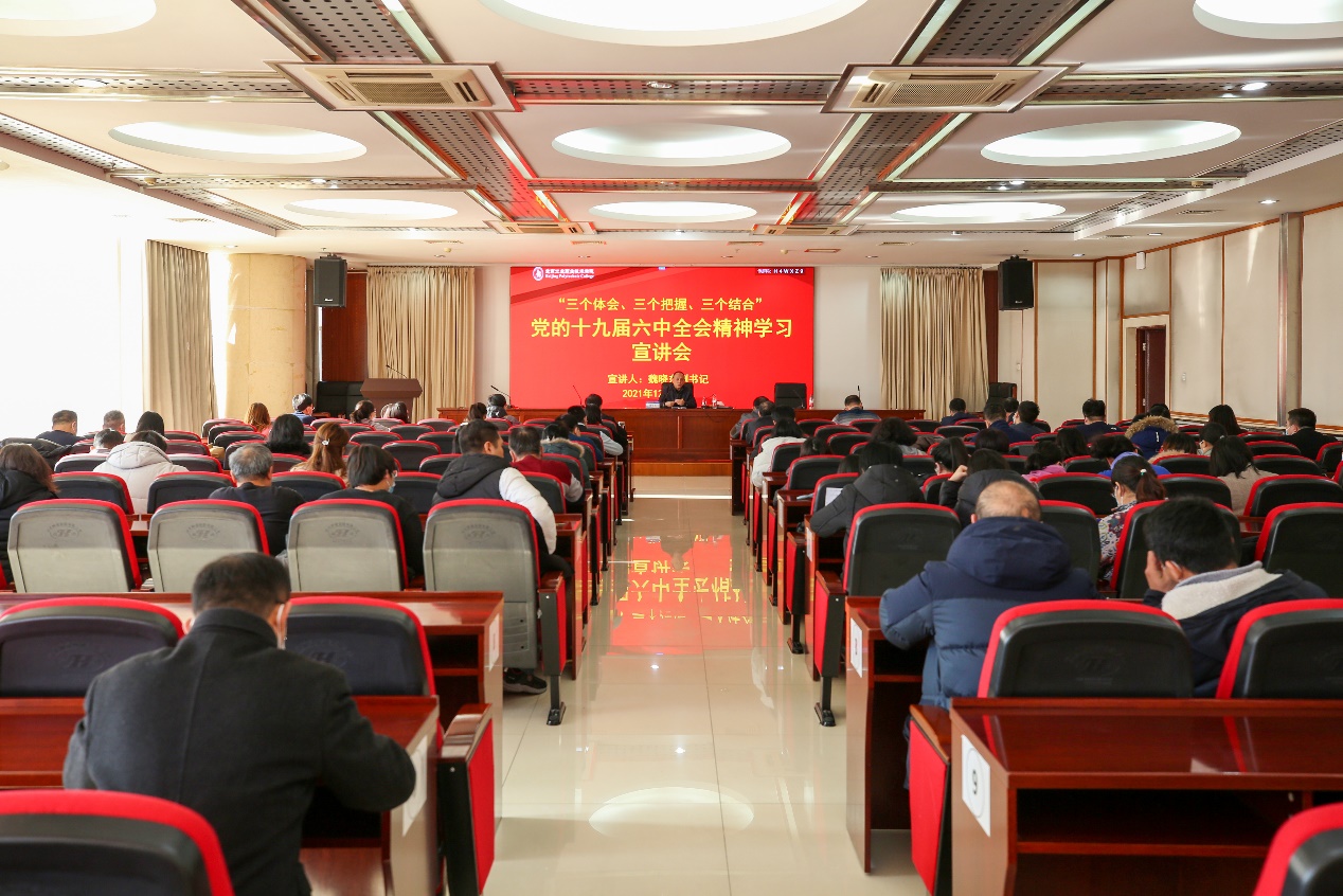 魏曉東副書記從“三個體會、三個把握、三個結合”三個方面對黨的十九屆六中全會精神進行了深入解讀和全面宣講。首先,他根據十九屆六中全會核心要義,談到個人“三個體會”,一是《決議》深刻總結了我們黨一百年來團結帶領人民從勝利走向勝利的偉大歷程,教育引導全黨深刻認識紅色政權來之不易、新中國來之不易、中國特色社會主義來之不易,增強我們繼續前進的勇氣和力量。二是《決議》深刻總結我們黨一百年來從小到大、從弱到強的成長歷程,教育引導全黨深刻認識加強黨的政治建設的重要性,增強全黨團結統一的自覺性和堅定性。三是《決議》深刻總結了我們黨一百年來加強自身建設、推進自我革命的偉大實踐,教育引導全黨深刻認識全面從嚴治黨的重要性和必要性,確保我們黨始終成為中國特色社會主義事業的堅強領導核心。