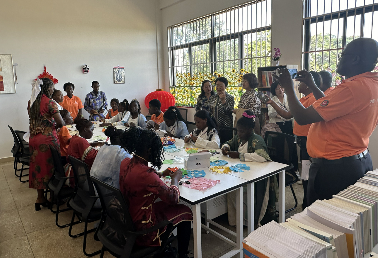座談后,訪問團參觀中贊職院新舊兩個校區,重點調研了實訓車間,計算機教室,圖書館建設情況,了解學生實習實訓情況。田紅芳一行看望了我校外派中贊職院北工院分院院長及孔子課堂負責人馬雋,聽取了中贊職院外方院長Jorick Yamvwa的介紹,并與中贊職院北工院分院及孔子課堂贊方本土教師進行座談交流。深入了解了贊方教師在職業發展、學歷提升、教育教學等方面的意見建議,以及目前我校分院在教學資源、實習實訓設備、建設運行等方面的實際需求。