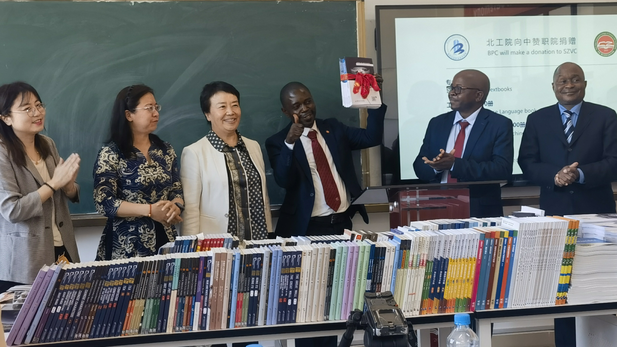 田紅芳代表學校向中贊職院捐贈了6套共300冊英文版專業教材,捐贈了中國教育部語合中心《職通中文》系列教材、《中國職業教育工業漢語》系列叢書等專門用途漢語圖書100冊,HSK標準教程等中文教學或中國文化類書籍300冊。我校國際處處長孟晴介紹了教材開發和出版情況,巫梅琳代表北京市教委向與會來賓推介了“留學北京”品牌,歡迎和鼓勵贊比亞當地優秀學生到北京學習交流。