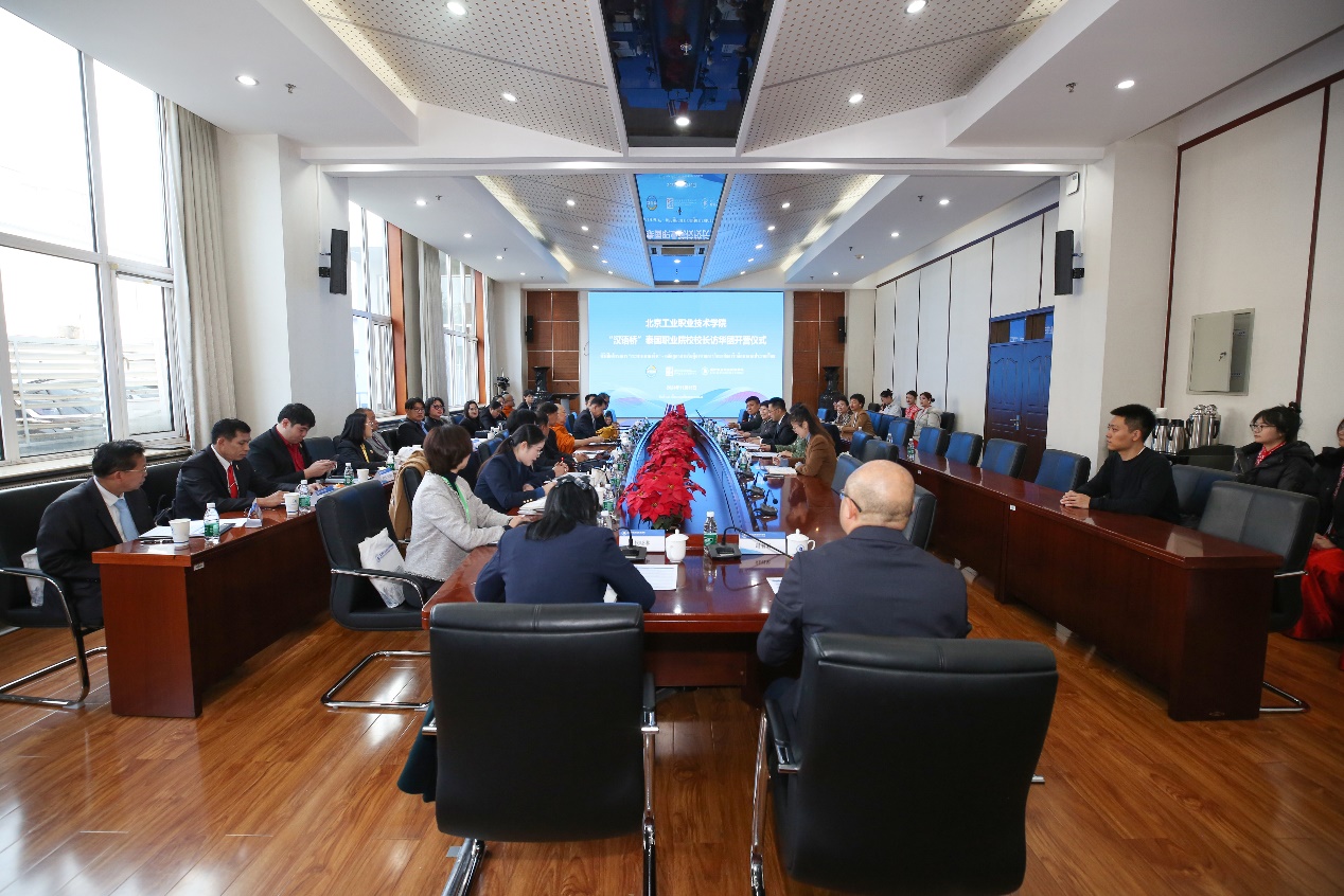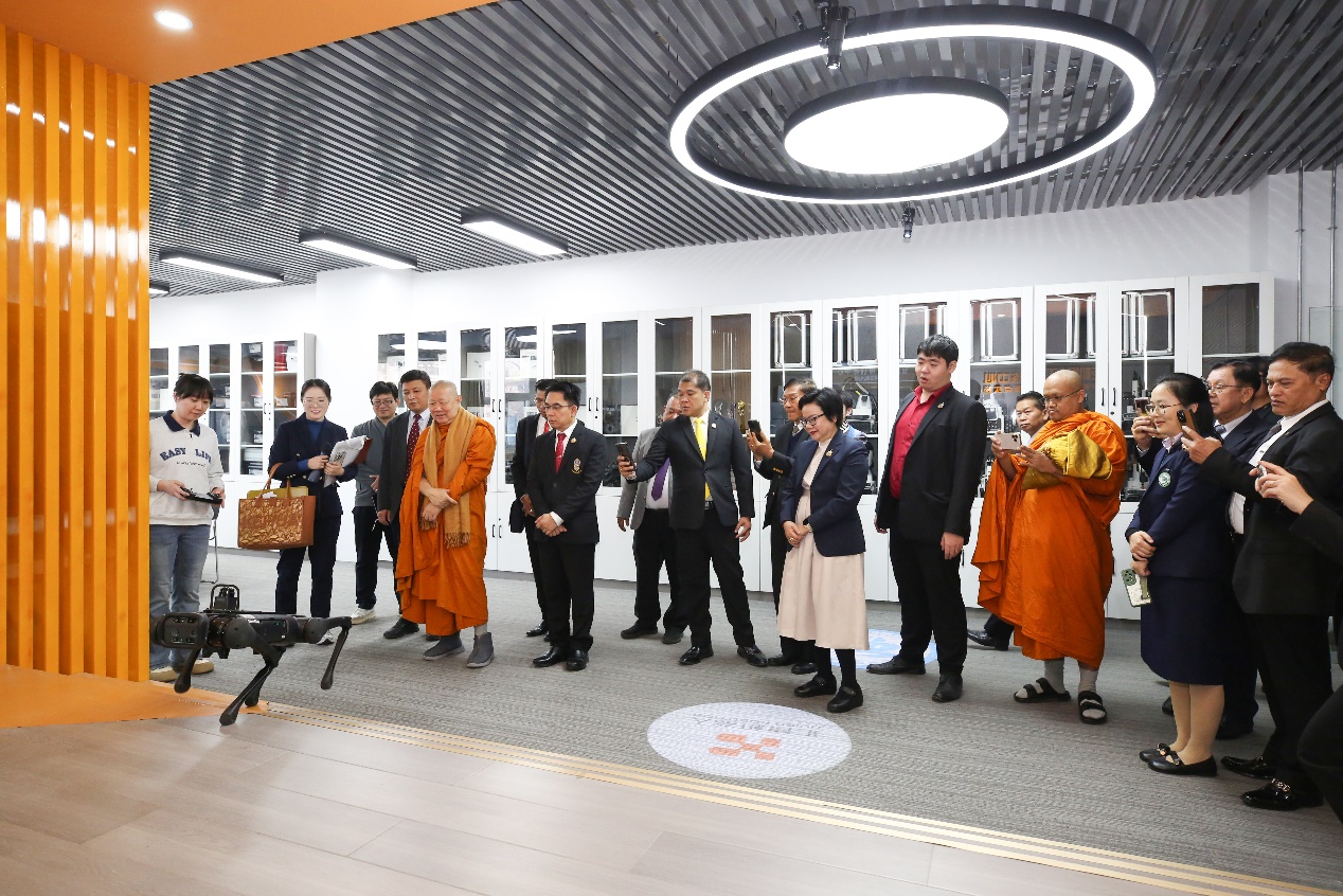 柳長(zhǎng)安代表我校對(duì)泰國(guó)頌德通猜副僧王一行和校長(zhǎng)訪華團(tuán)的到來表示熱烈歡迎,介紹了學(xué)校基本辦學(xué)情況,重點(diǎn)介紹了近年來學(xué)校在職教出海方面開展的探索與實(shí)踐。在與泰國(guó)的交流與合作中,我校作為教育部中外語言交流合作中心“中文+職業(yè)技能”教育實(shí)踐與研究基地,組織泰國(guó)學(xué)生參加“漢語橋”——“一帶一路”國(guó)家“中文+職業(yè)技能”線上研習(xí)營(yíng),聯(lián)合泰方共同舉辦泰國(guó)本土中文教師培訓(xùn)項(xiàng)目,與泰國(guó)坦亞武里皇家理工大學(xué)簽署校際友好合作協(xié)議等,結(jié)出豐碩成果。今年,我校國(guó)際交流合作處副處長(zhǎng)謝麗杲赴泰國(guó)擔(dān)任由中泰兩國(guó)政府共同建設(shè)的中泰語言與職業(yè)教育學(xué)院首任院長(zhǎng),在教師培訓(xùn)、專業(yè)共建、學(xué)生交流等領(lǐng)域開展工作。柳長(zhǎng)安表示,希望未來能夠在職業(yè)教育、國(guó)際中文教育等領(lǐng)域加強(qiáng)與泰國(guó)高水平大學(xué)及職業(yè)院校的合作與交流,共同培養(yǎng)高水平國(guó)際化技術(shù)技能人才,推動(dòng)雙方經(jīng)濟(jì)互利共贏,共同引領(lǐng)高質(zhì)量共建“一帶一路”持續(xù)向前發(fā)展。