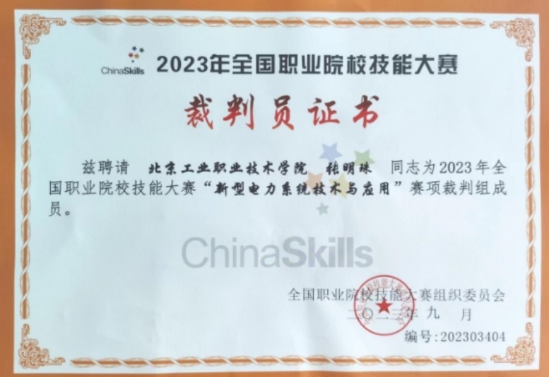 她發揮雙師、雙語優勢,以堅實的博士理論基礎及實操教學能力豐富個人的企業實踐經歷,2023年前往企業開展4期技術培訓。2012年,她被公派前往明尼蘇達大學訪學,多年來踐行了職業院校的雙語教學;2017年,獲批北京市教委“青年拔尖人才”項目,服務企業技術創新;2018年,在全國職業院校學生技能大賽中被教育部授予“優秀指導教師”榮譽稱號;2021年,服務北京冬奧會延慶村場館管理;2022年,擔任施耐德電氣(中國)/特聘技術專家、北京西城區數字化改造項目評審專家;2023年,擔任全國機械行指委智能制造專執委專家委員、全國職業技能大賽新型電力系統技術與應用賽項裁判。