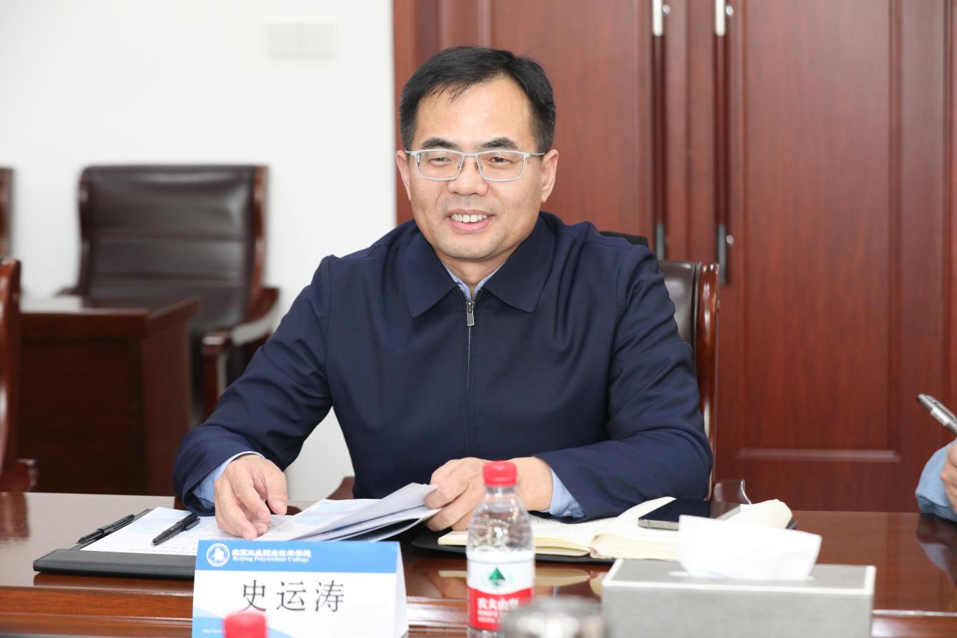 黨委常委、副院長史運濤對張家口職業技術學院來校交流熱烈歡迎,表示兩校已合作多年,主要就學校近年取得成績、師資隊伍建設、產教融合發展等方面進行了介紹。