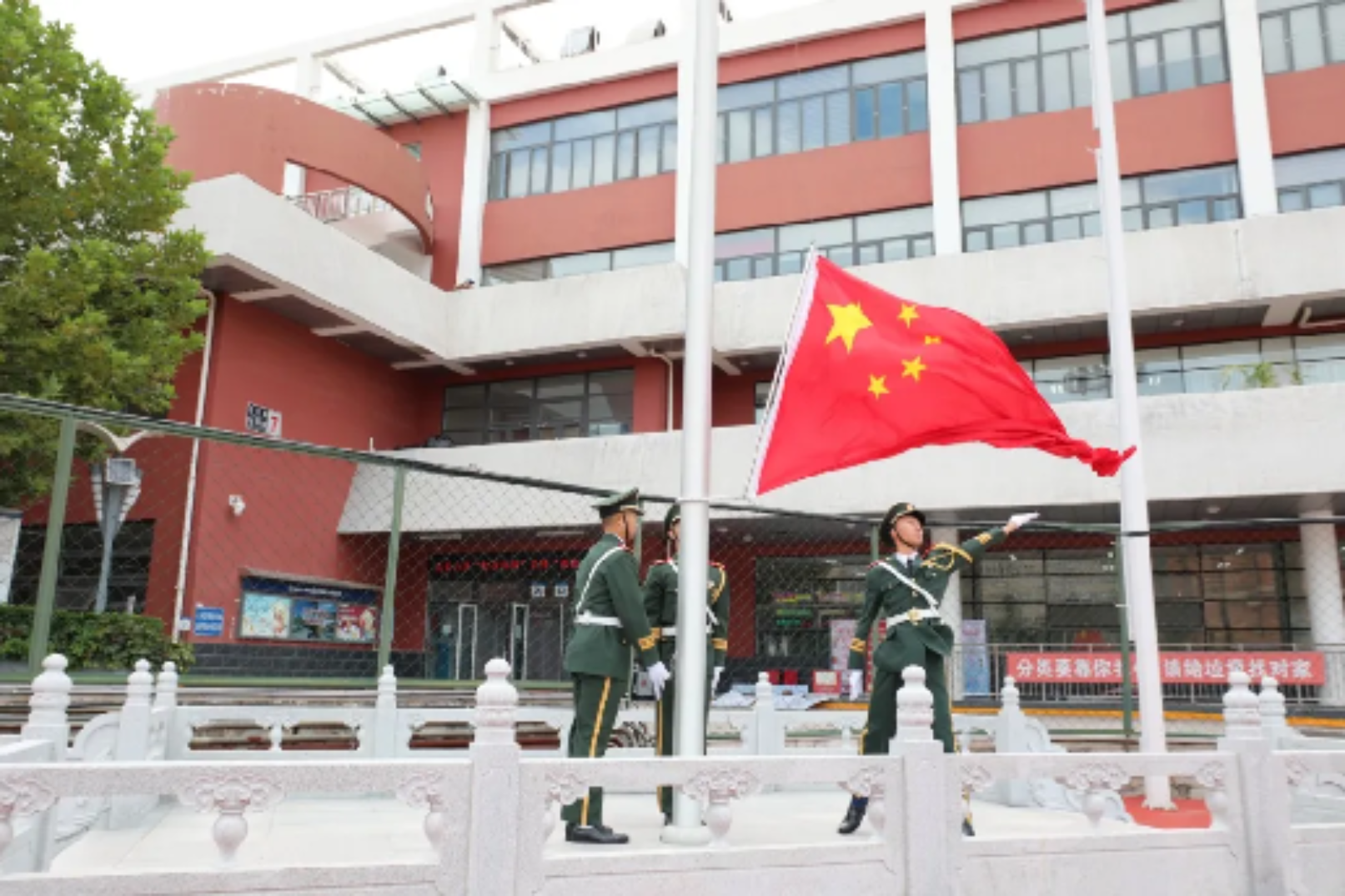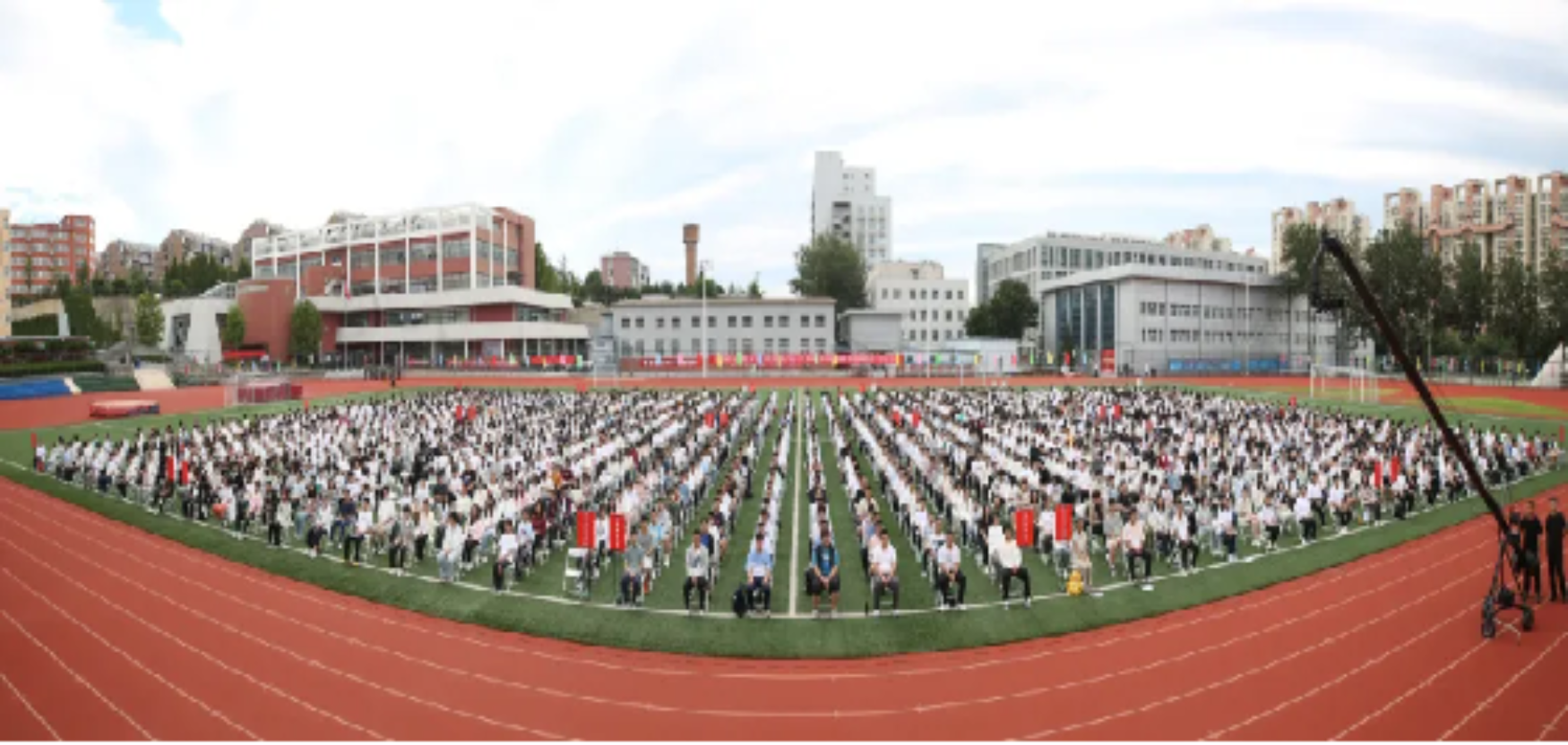 全體起立,奏國歌”,上午8時30分,開學典禮在雄壯國歌聲中拉開帷幕。歌聲在綠茵場上飄揚,家國情在心中厚植。