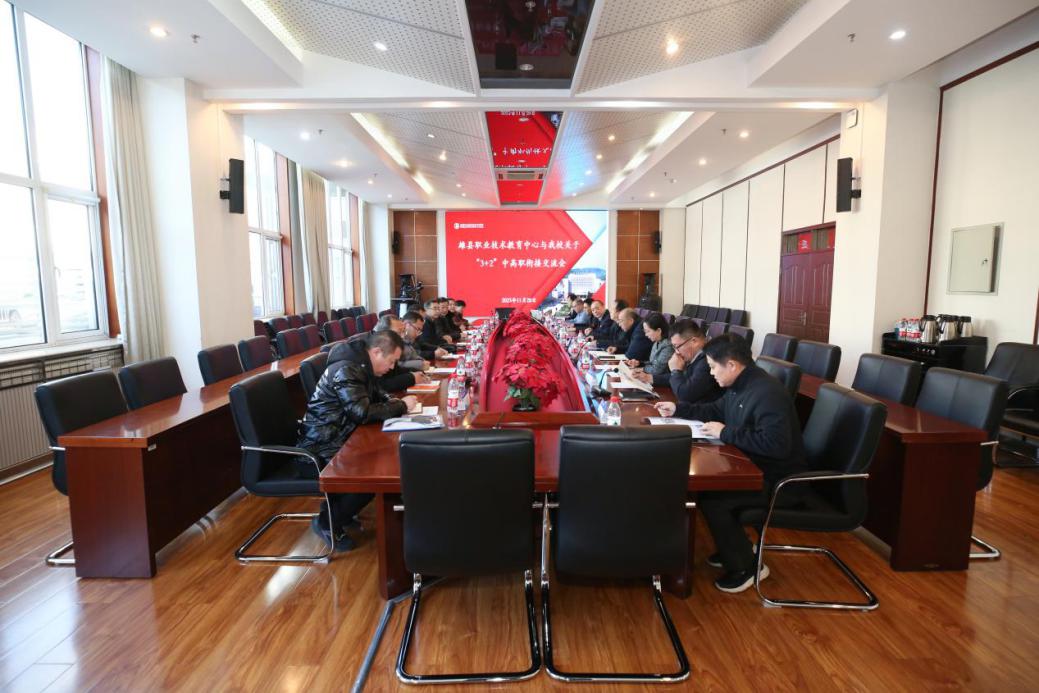 2023年11月28日上午九時,雄縣職業技術教育中心副校長張友民、副校長常群良、辦公室主任曾澤生及相關系部一行8人來我校交流訪問。雙方在匠心樓第四會議室召開關于“3+2”中高職銜接交流會。我校黨委副書記魏曉東、黨政辦公室、教務處、招生就業處、繼續教育學院、三個對接學院負責人參加了此次交流活動。會議由招生就業處處長賀繼偉主持。