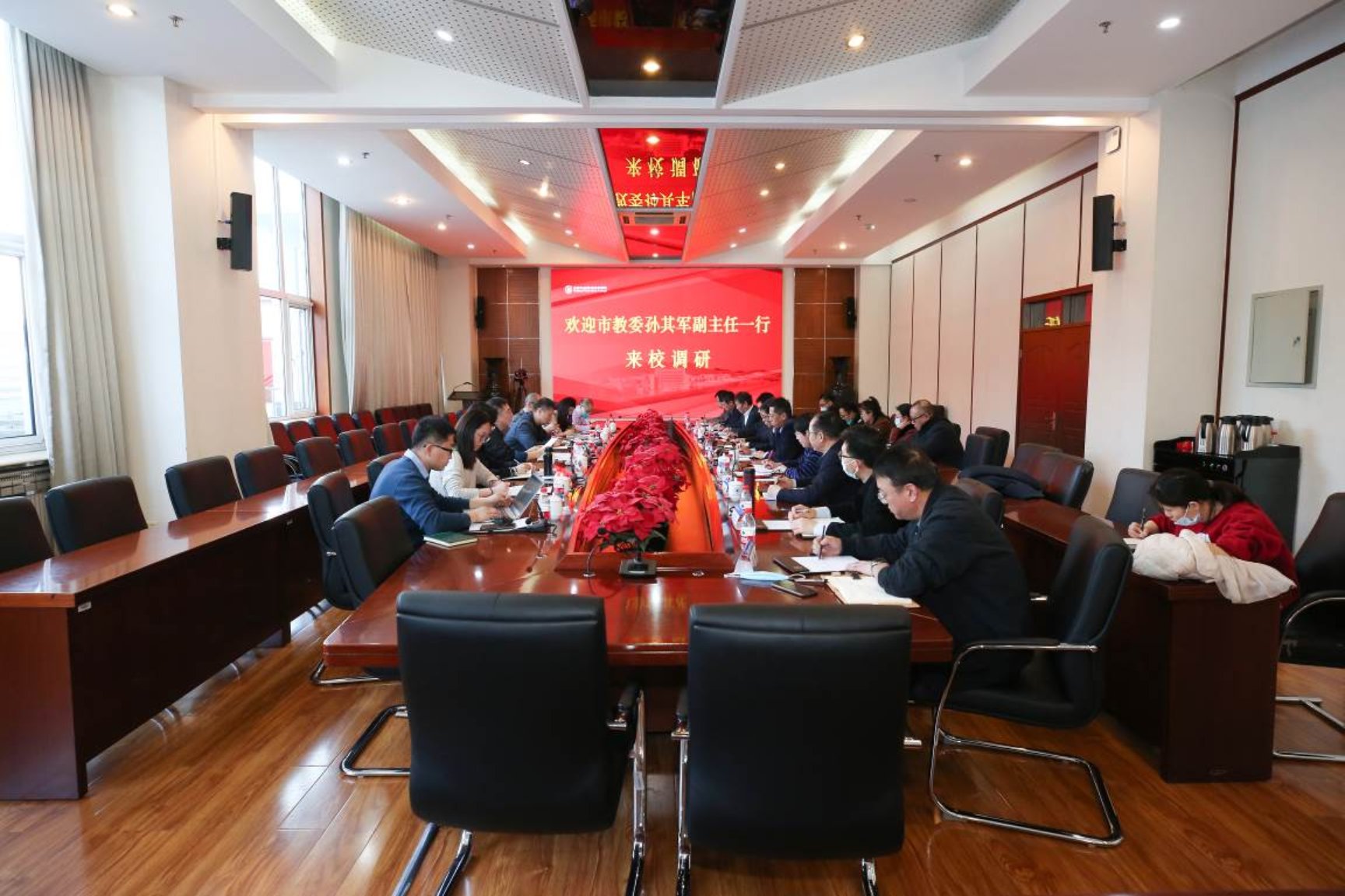 3月3日上午,北京市教委副主任孫其軍一行到北京工業職業技術學院調研職業教育工作。市教委職成處副處長余俊、市教委職成處四級調研員張蘭,市教委職成處、市教育督導評估院、市教科院高教所相關干部和專家隨同調研。學校黨委書記高喜軍,黨委副書記、院長安江英,黨委常委、副院長周燕,黨委常委、紀委書記張萌萌,黨委常委、院長助理謝光輝,黨政辦、人事處及各二級學院部門負責人參與了調研活動。