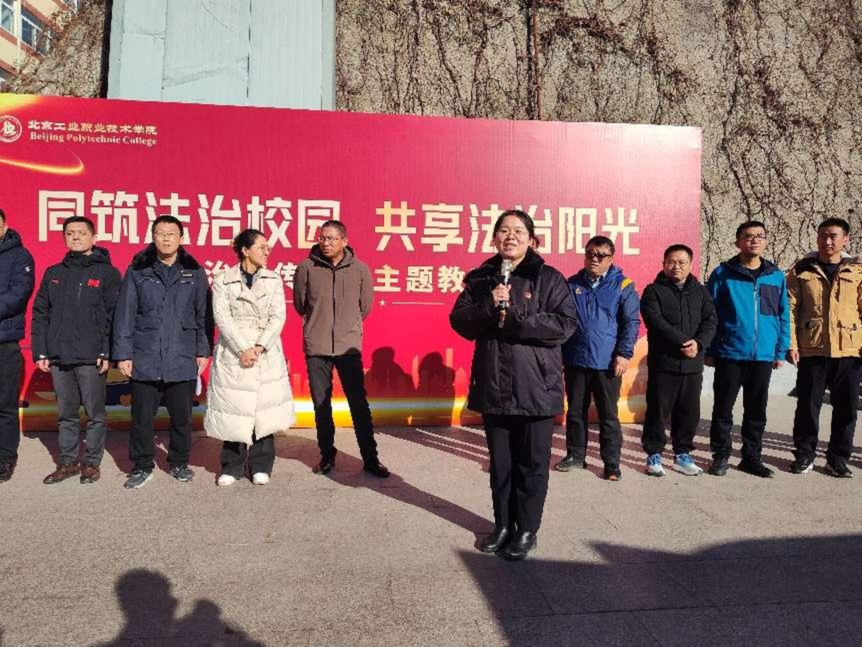 石景山區檢察院未成年人檢察辦公室史芳菲檢查官做普法宣傳,強調要加強校園法治教育,提高未成年人的法治意識和自我保護能力,向同學們講述相關法律法規,并發放相關宣傳冊。