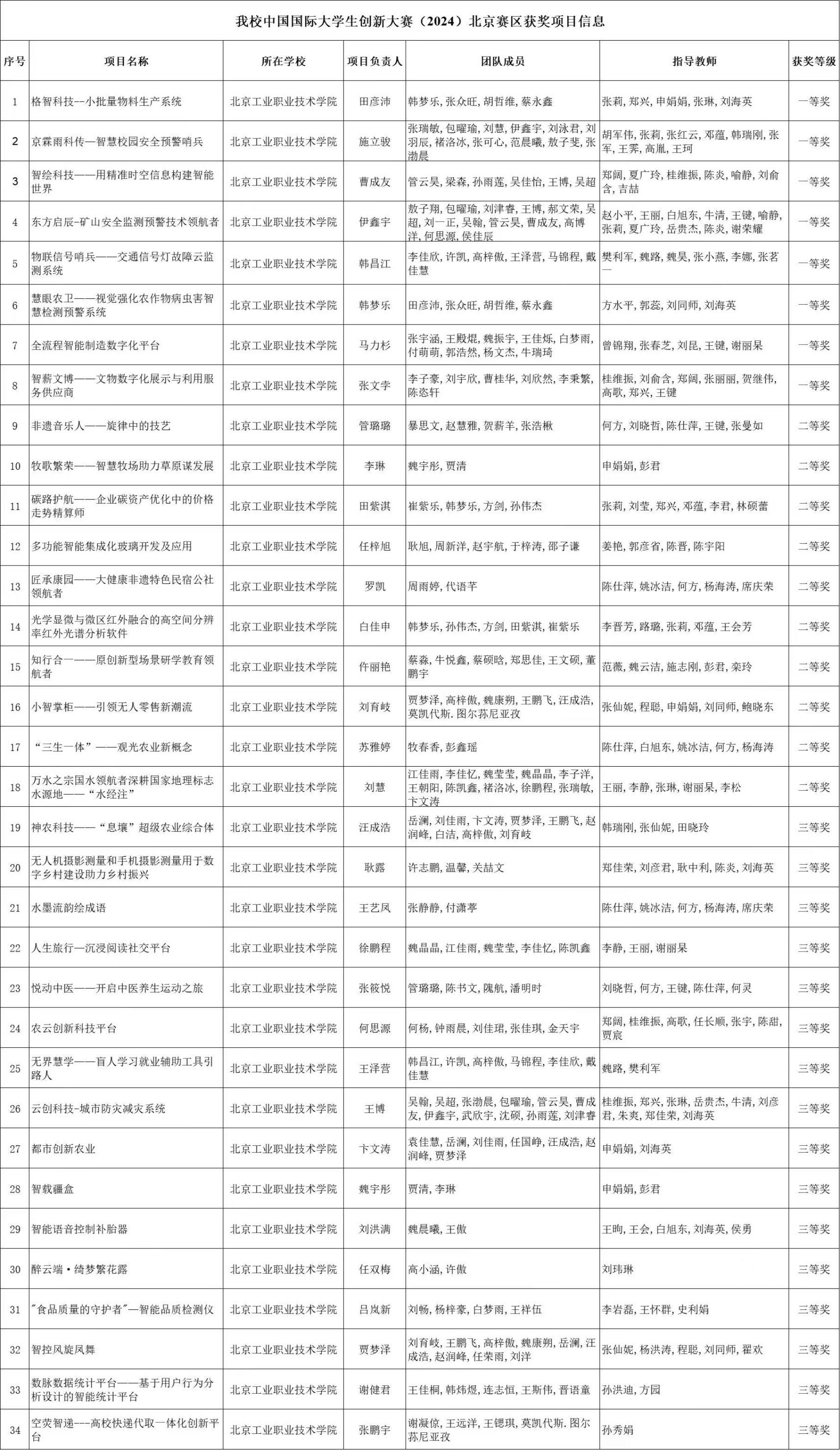我校中國國際大學生創新大賽(2024)北京賽區獲獎項目信息
