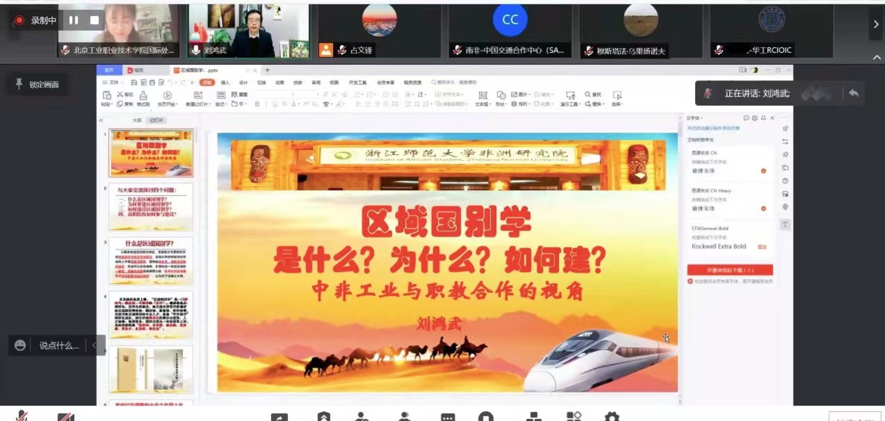 為做好我校與教育部中外語(yǔ)言交流合作中心合作共建的“中文+職業(yè)技能”教育實(shí)踐與研究基地相關(guān)建設(shè)工作,加強(qiáng)非洲及贊比亞區(qū)域國(guó)別研究,我校國(guó)際交流合作處聯(lián)合科研處于3月23日邀請(qǐng)浙江師范大學(xué)非洲研究院劉鴻武教授在線(xiàn)上做了相關(guān)主題報(bào)告分享。