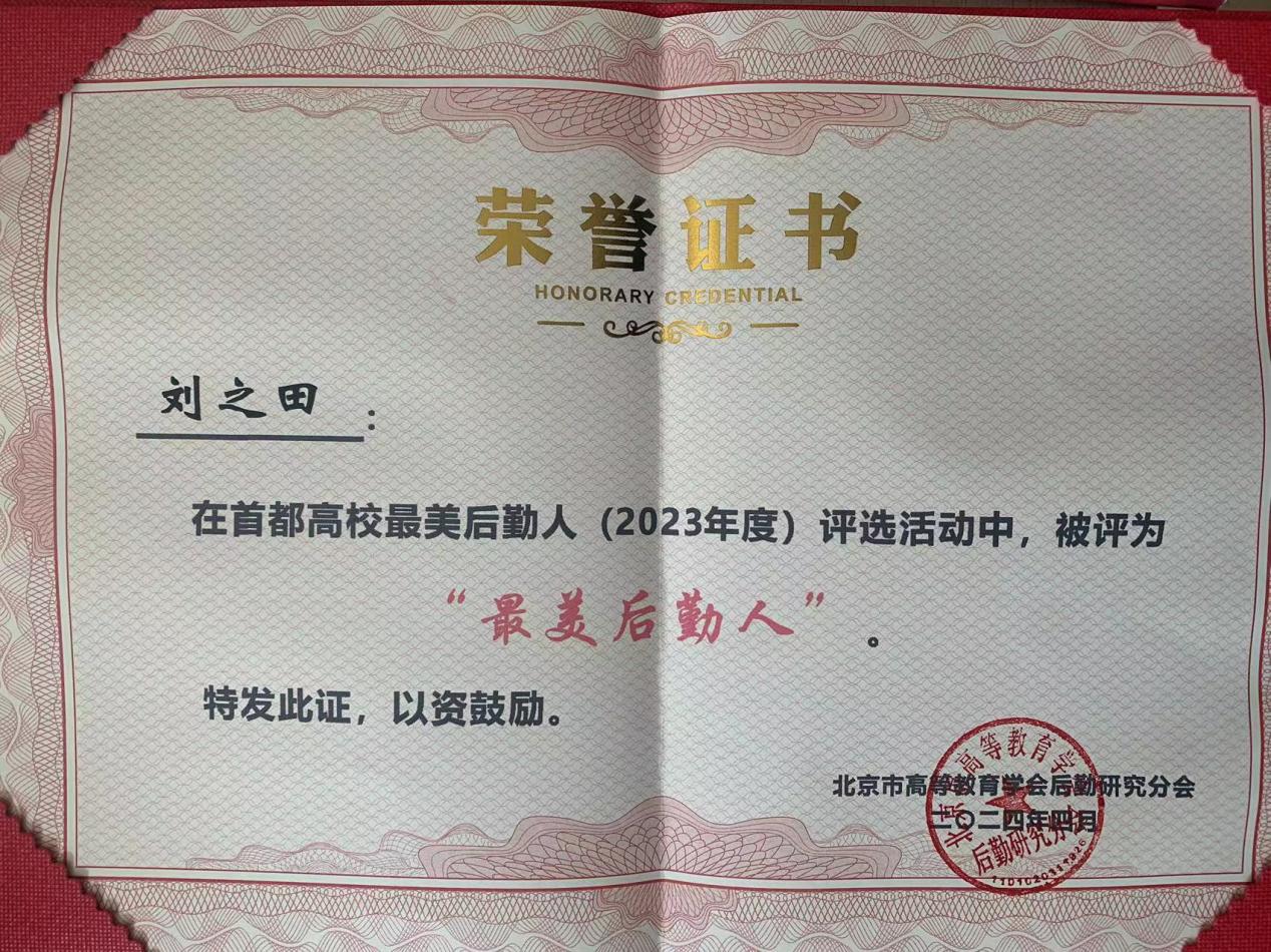 2023年度首都高校“最美后勤人”榮譽(yù)證書
