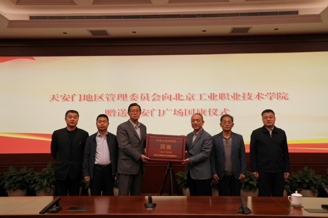 12月13日,北京市人民政府天安門地區管理委員會向我校贈予國旗儀式在京舉行。天安門地區管理委員會黨組成員、副主任姚輝向學校贈予國旗,我校黨委副書記魏曉東代表學校接受國旗。