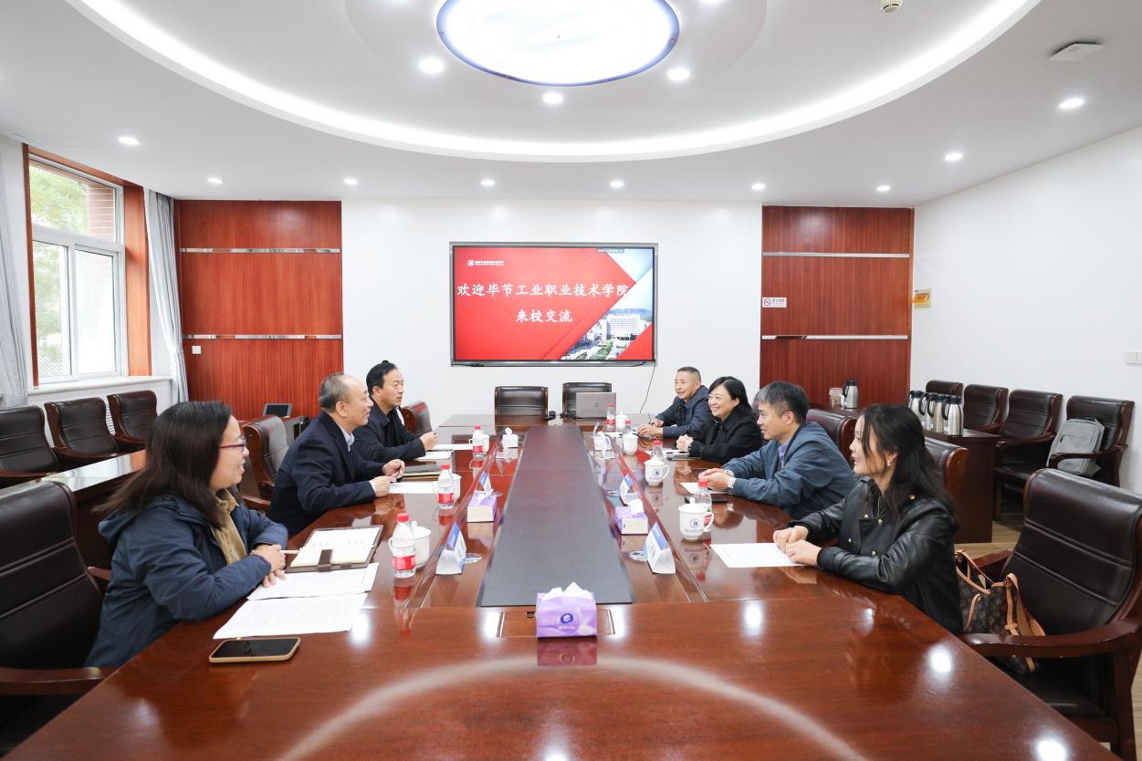2024年10月30日下午,畢節工業職業技術學院黨委委員、副院長黃瑛,副院長錢海兵,相關職能部門負責人等一行4人來我校考察交流。我校黨委副書記魏曉東以及相關部門負責人接待來訪客人,并進行座談交流。