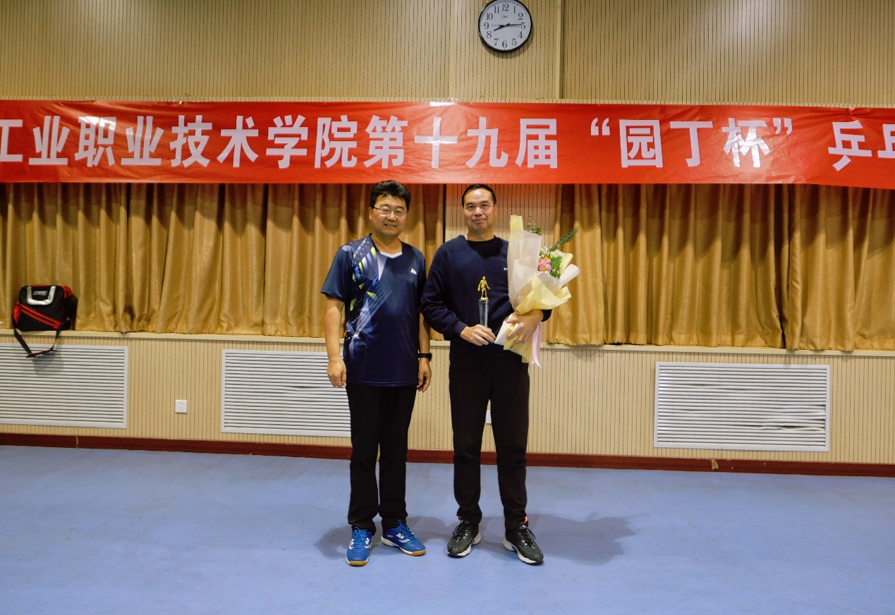黨委常委、紀(jì)委書記錢偉為男子單打比賽冠軍頒獎(jiǎng)