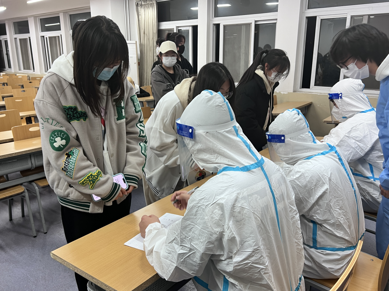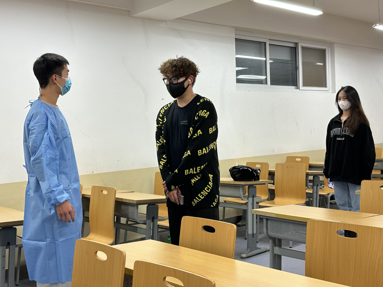 11月9日晚自習時,志愿者們提前進入演練教室為演練做好準備。晚上8:00活動正式開始,應急演練主要模擬了工作人員按照要求對學生進行身份核驗、體溫檢測、信息登記等,以及在不同場景下學生出現體溫異常時,學院疫情防控工作小組全過程處置流程。其次還模擬了流調工作,流調信息包括:收集個人信息、校外活動軌跡、返校方式以及重點描述校內活動軌跡等四個方面。演練全程志愿者均嚴格做好自身疫情防控措施。