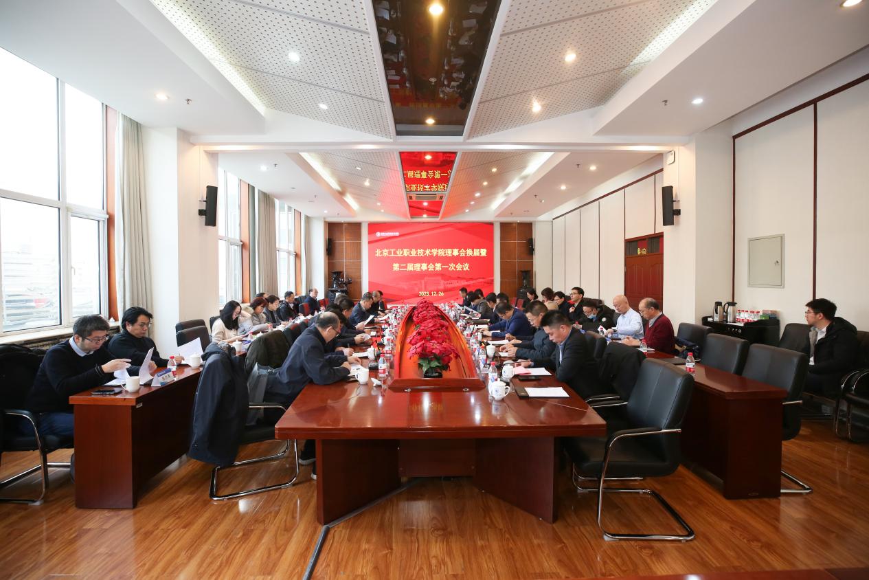 12月26日,我校召開北京工業職業技術學院理事會換屆暨第二屆理事會第一次會議,學校黨委書記高喜軍,黨委副書記、院長安江英出席會議,理事單位代表、學校相關職能處室和二級學院負責人等參加會議。會議由黨委常委、副院長史運濤主持。