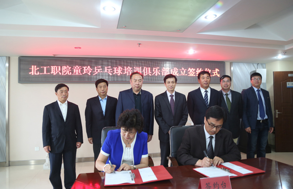 5月7日,我校與北京童玲體育文化有限公司在校第一會議室簽署了合作創建“童玲乒乓球培訓俱樂部”的協議。我校黨委書記王偉、副校長劉蘭明、黨政辦公室主任劉曉哲、體育部直屬支部書記梁賦、體育部主任賈書申,以及北京童玲體育文化有限公司董事長、乒乓球世界冠軍童玲女士等出席了簽約儀式。