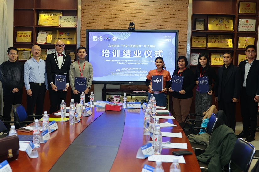 為期十天的培訓中,高質量的培訓內容和豐富多彩的活動安排得到了學員們一致好評。結業儀式上,學員代表分享了培訓收獲,并對整個培訓安排表示贊嘆和感謝。來自馬來西亞的陳慈潤老師談到,這趟培訓之旅,老師們不僅增長了中文知識,更深入了解了中國的文化與人工智能技術。從傳統文化的熏陶到前沿人工智慧科技的探索,從上課老師們的悉心指導到學員相互交流研討,參訓老師們收獲滿滿。未來,老師們將帶著滿腔熱情,將所學所思應用于實際教學工作中,為促進中外文化交流與人工智能開發貢獻一份微薄的力量。越南的鄧玉輝老師表示,越南和中國山水相連、文化相通,中國和越南建立了全面戰略合作伙伴關系,兩國人文領域交流日益深化,民心距離不斷拉近,通過培訓對中國的科技發展印象深刻,獲得了許多關于人工智能領域的有益啟示。越南參訓老師表示,非常希望發展半導體技術和人工智能技術,希望能加強和我校合作。印度尼西亞的木力老師說,這次培訓中,對中文和中國文化、人工智能和信息技術的探索進一步拓寬了視野,培養了友情,交流了知識,是一段十分難忘的經歷,在今后的教學中,會將學習的新知識融入教學實踐中,讓更多的學生從中受益。