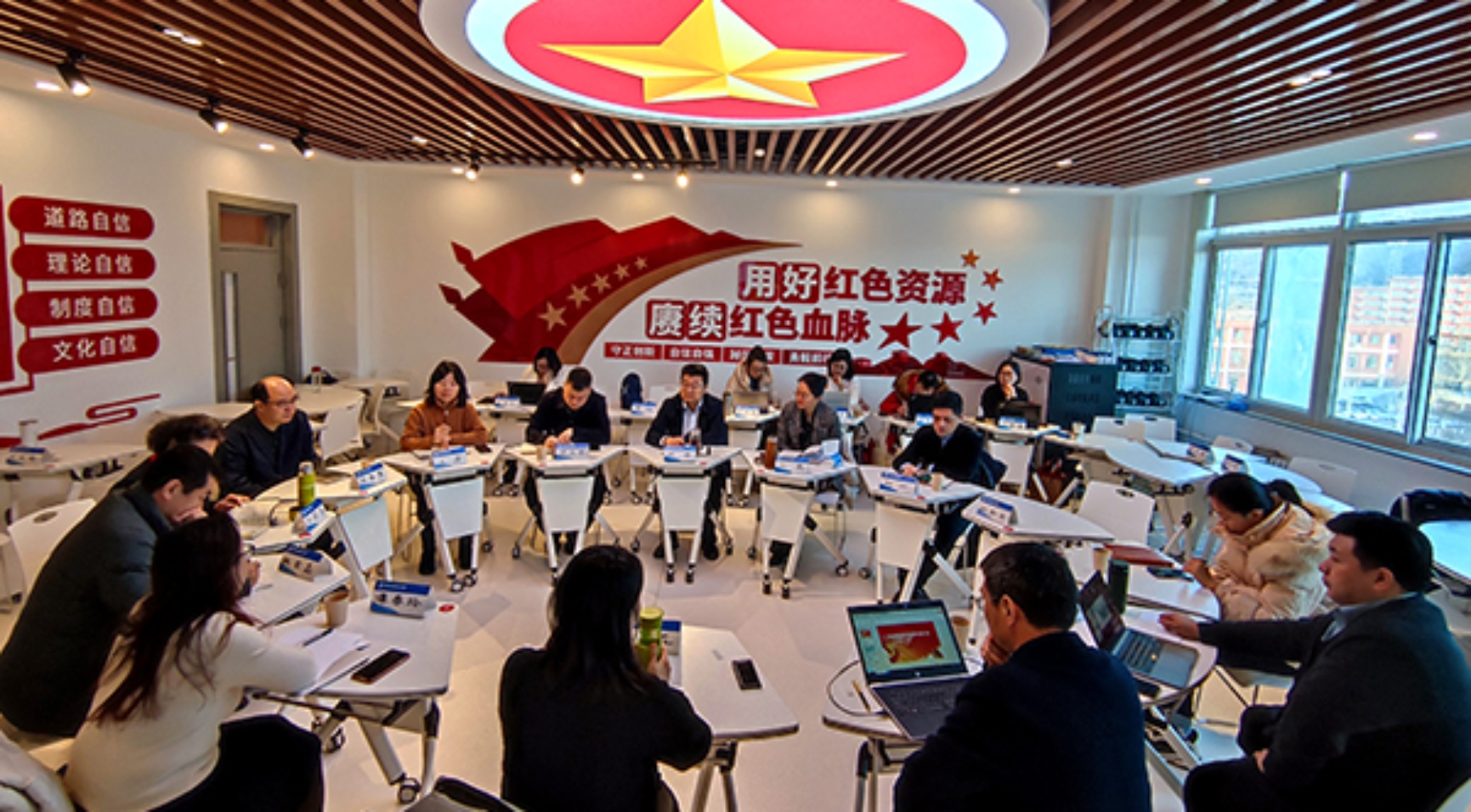 馬院副院長匯報馬院教學工作,三位教研室主任匯報教研室建設工作,各位思政課教師匯報了個人教學科研等工作。