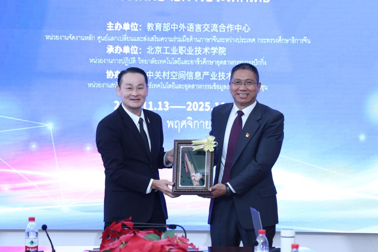 我校黨委常委、副院長高世吉代表學校對泰國職業教育訪華團一行表示熱烈歡迎。他在致辭中談到,作為中國特色高水平高職學校,北工院辦學實力突出,長期深耕“中文+職業技能”教育創新實踐,是教育部有色金屬行業職教 “走出去” 首批試點院校,已在贊比亞、阿根廷等地搭建多個國際合作平臺,連續5年承接教育部中外語言合作交流中心(以下簡稱“語合中心”)漢語橋項目。談及中泰合作,高世吉表示,學校與泰國交流淵源深厚,從線上研習營、本土教師培訓到校際友好協議簽署,合作不斷走深走實。特別是 2023 年中泰語言與職業教育學院揭牌后,語合中心選派我校國際處副處長謝麗杲擔任首任中方院長,推動雙方在多領域深度協作。高世吉強調,在“中泰一家親”深厚情誼與共建“一帶一路”背景下,本次訪華團聚焦北斗時空信息技術領域,為中泰職教交流搭建了重要橋梁。學校愿與泰國各方深化合作,加強院校互鑒,共同培養具有國際視野的高素質技術技能人才,為兩國關系發展與區域繁榮注入持久動力。