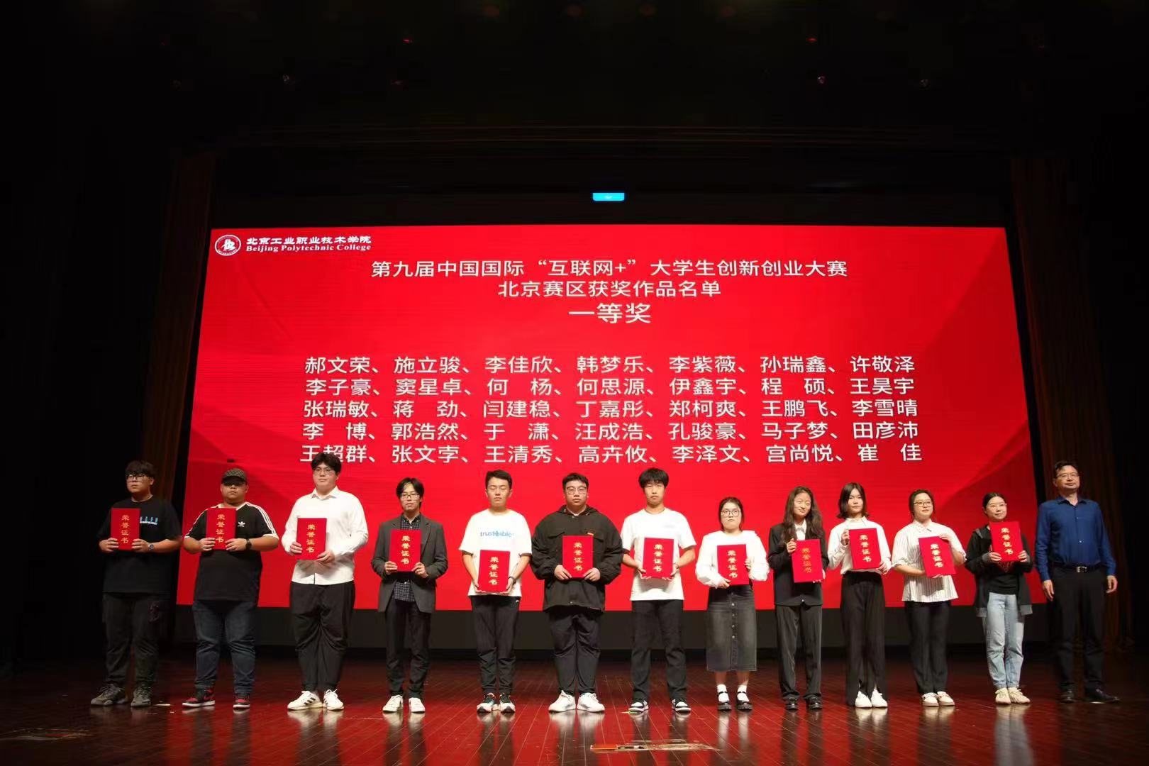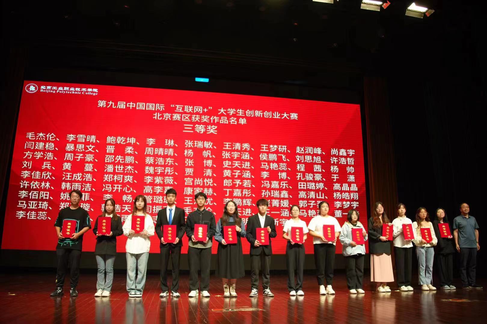 教務處處長王佼為獲得第九屆中國國際“互聯網+”大學生創新創業大賽北京賽區一等獎、二等獎的團隊代表頒獎