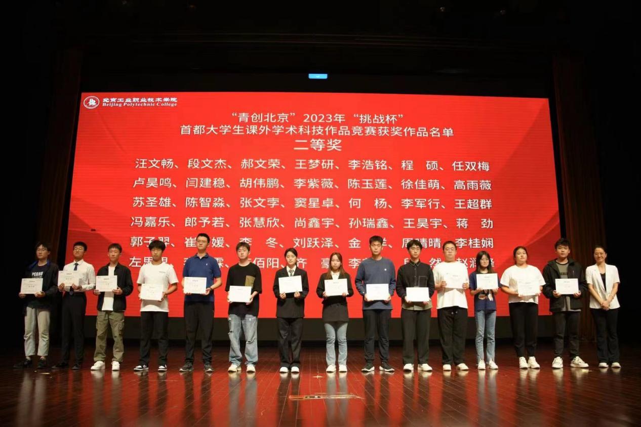 校黨委常委、副院長沈瑩為獲得“青創北京”2023年“挑戰杯”首都大學生課外學術科技作品競賽獲特等獎、一等獎、二等獎的團隊代表頒獎
