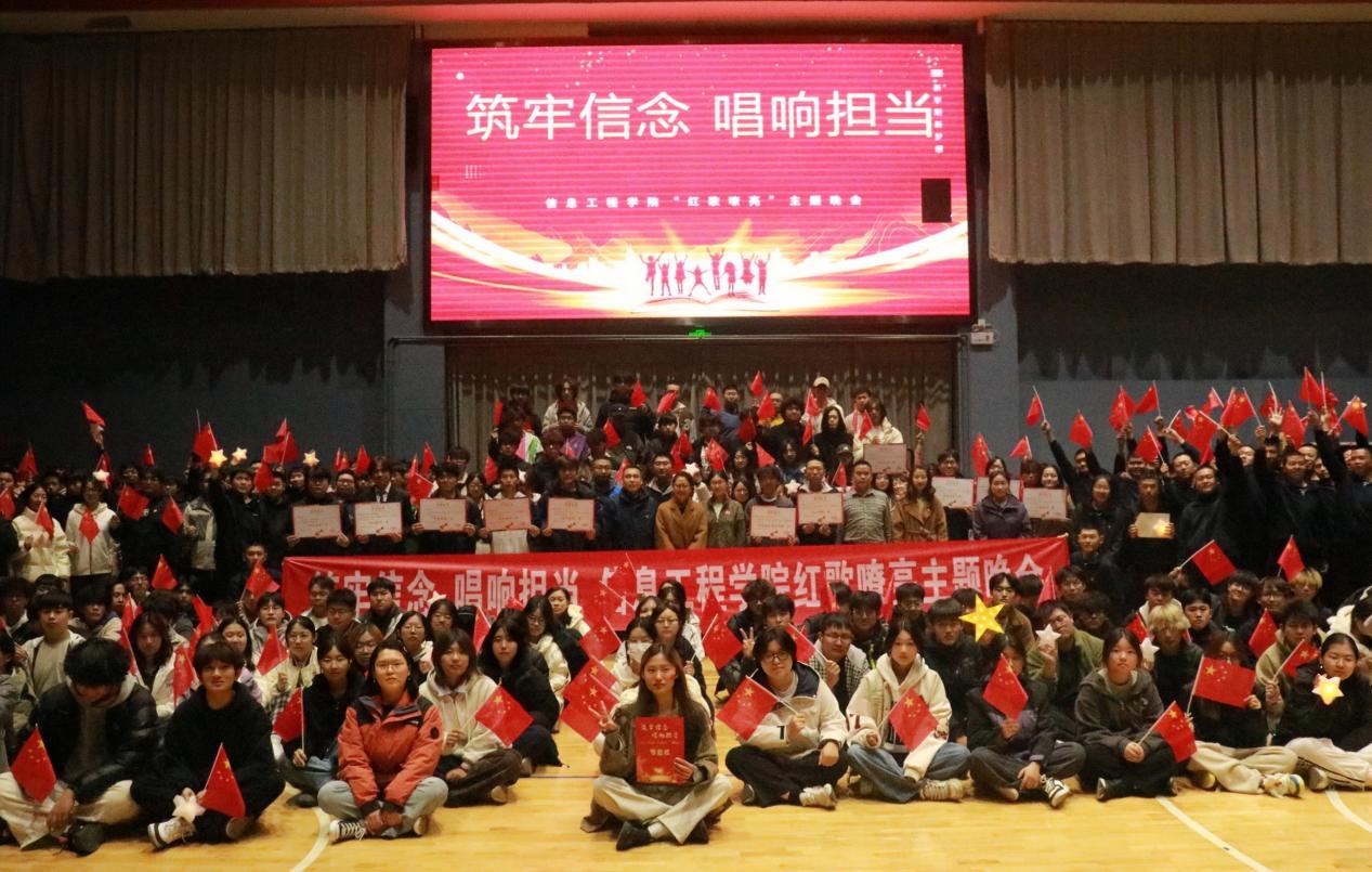 信息工程學院“紅歌嘹亮”主題晚會中,師生同臺獻藝,一首首紅歌“鏗鏘有力、催人奮進”,既展現(xiàn)新生“朝氣蓬勃的精神風貌”,更讓紅色基因在旋律中代代相傳。