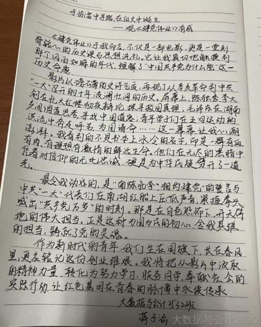 建筑與測繪工程學院“青春寄語新時代”留言活動中,同學們執(zhí)筆寫下赤子之心,讓留言墻成為凝聚報國之志的生動載體;文法與管理學院在觀影后組織觀后感書寫,推動愛國主義精神內(nèi)化于心、外化于行。
