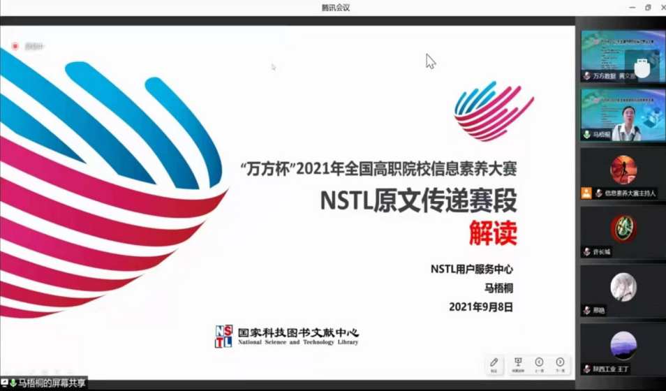 本次會(huì)議上,國家科技圖書文獻(xiàn)中心用戶服務(wù)中心專家馬梧桐也給我們帶來一場精彩的原文傳遞資源和利用報(bào)告,資源共享、信息共享是教學(xué)的需要、科研的需要、時(shí)代的需要。馬老師就2021年即將舉辦的NSTL原文傳遞大賽進(jìn)行了解讀和說明,積極倡導(dǎo)通過比賽讓更多的師生了解原文傳遞資源的便捷、高效和優(yōu)質(zhì)資源,為師生的信息需求提供更好的服務(wù)。