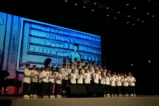 文法與管理學院合唱團演唱歌曲《在燦爛的陽光下》、《走向復興》