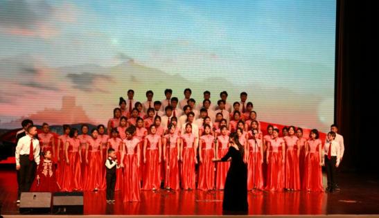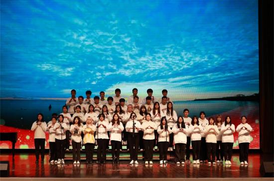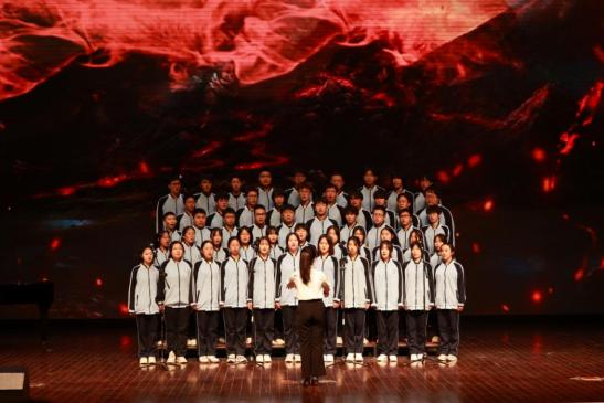 校“夢”之聲合唱團演唱歌曲《燈火里的中國》、《龍的傳人》