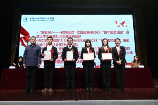 校黨委常委、副院長史運濤宣讀2022-2023學年校級“文明寢室”、校級“三好學生”、“優秀學生干部”、校級“先進班集體”、2023年青年服務國家首都大學生暑期社會實踐優秀團隊、2023年北京“千人百村”大學生暑期社會實踐優秀組織獎、鄉村文明建設優秀個人表彰決定。與會領導為獲得榮譽的集體和個人頒發證書。