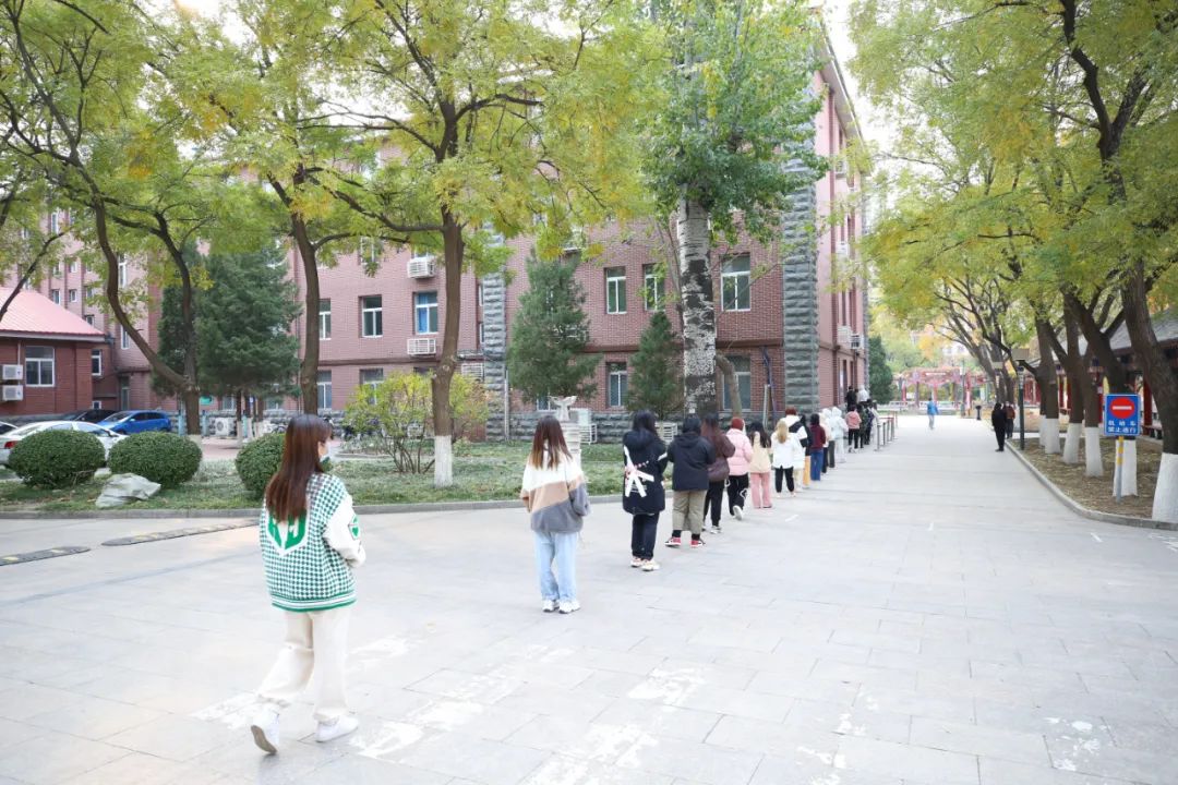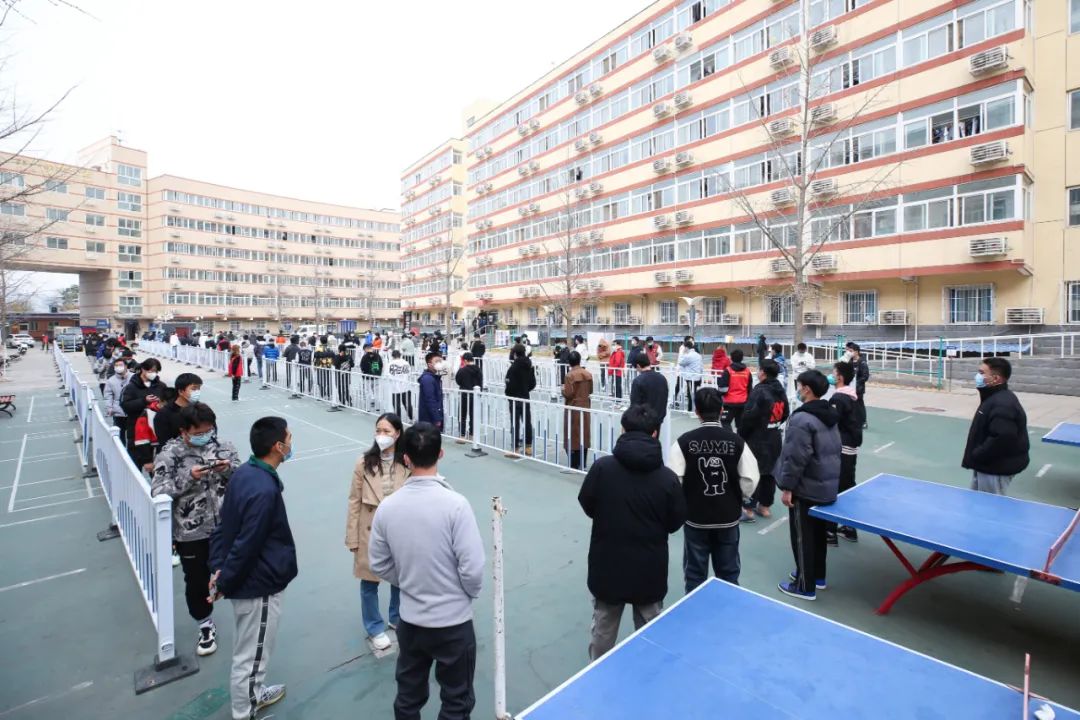 18日上午8時,全校師生員工進行全員核酸檢測,教師志愿者、學生志愿者“紅馬甲”現場維護秩序。未來兩天,學校還將開展兩輪全員核酸檢測,采樣力量充足,能夠為師生提供便捷安全的服務。在京校外師生嚴格落實三天三檢。