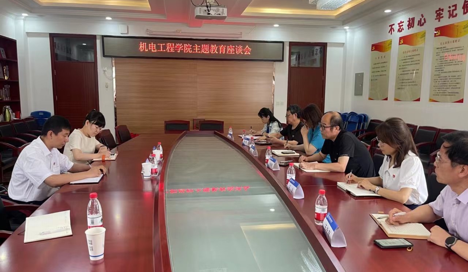 2023年7月5日上午9:30,市委巡回第十七指導組成員王超塵、武爽兩位領導蒞臨機電工程學院參加主題教育座談會。機電工程學院黨總支書記王懷群、院長張春芝、副院長王會和全體黨支部書記參加了本次會議。