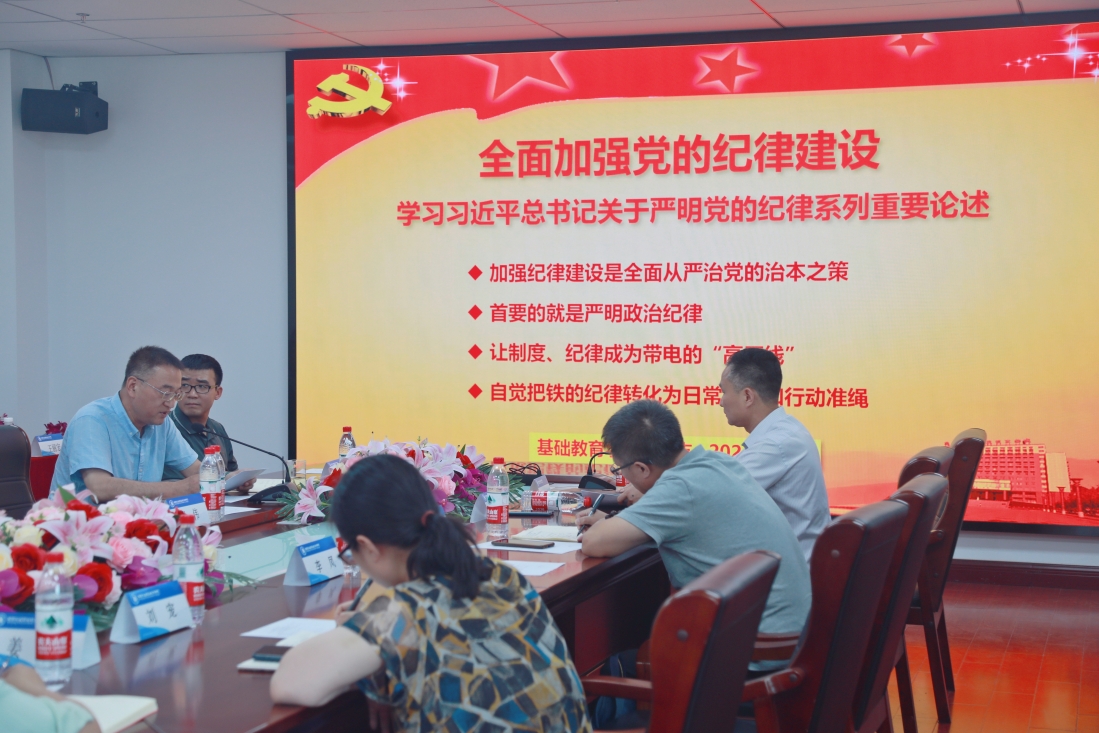王巍書記傳達了學校全面從嚴治黨工作會暨警示教育大會精神,并以《全面加強黨的紀律建設》為題,結合學院師德師風建設,為全體教師上了一堂生動的黨課。他強調,紀律和規矩是一切工作的保障,學高為師,身正為范,教師首先要在思想上和行動上自覺嚴格要求,追求崇高,追求卓越,學院全體黨員和教師要把黨章黨紀要求和《新時代高校教師職業行為十項準則》內化于心、外化于行,使之成為日常行為習慣和行動準繩。同時勉勵大家以教育家精神為指引,爭做新時代“有理想信念、有道德情操、有扎實學識、有仁愛之心”的“四有”好老師。