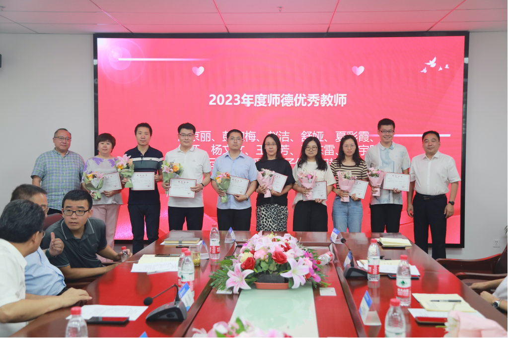 會議首先對優秀教師進行表彰。紀委書記錢偉為2023年度考核優秀教師頒發嘉獎證書,任鳳國部長和張普慶副處長為2023年度師德考核優秀教師頒發榮譽證書,學院黨總支書記王巍為2023年度優秀外聘教師頒發榮譽證書,學院院長沈杰為外教Peter頒發榮譽證書。