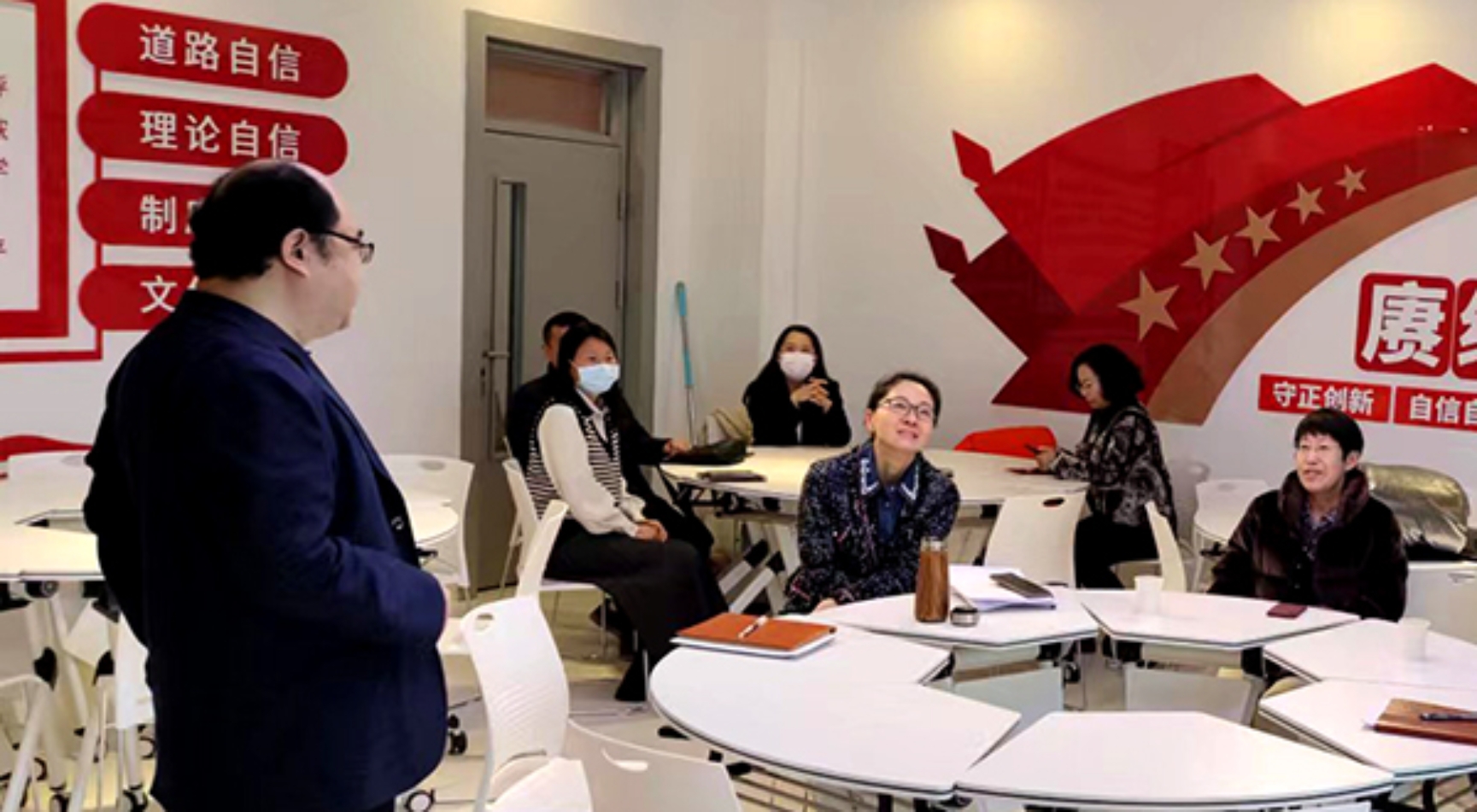按照學(xué)校教學(xué)工作部署,根據(jù)馬克思主義學(xué)院實(shí)際情況,為保證本學(xué)期VR思政課實(shí)踐教學(xué)體驗(yàn)的如期順利開(kāi)展,馬克思主義學(xué)院舉辦了“思政課虛擬仿真體驗(yàn)教學(xué)”培訓(xùn)暨研討會(huì),思政課教師、技術(shù)人員、中心管理人員匯聚一堂,圍繞VR思政體驗(yàn)融入思政課程的路徑、方法和課程資源開(kāi)發(fā)等進(jìn)行深入研討。馬克思主義學(xué)院院長(zhǎng)張春勇在培訓(xùn)會(huì)上表示,辦好新時(shí)代的思政課,要進(jìn)一步加強(qiáng)思政課改革創(chuàng)新,不斷提升思政課教師的信息化素養(yǎng),積極利用虛擬仿真等信息化技術(shù)賦能思政課教學(xué)。