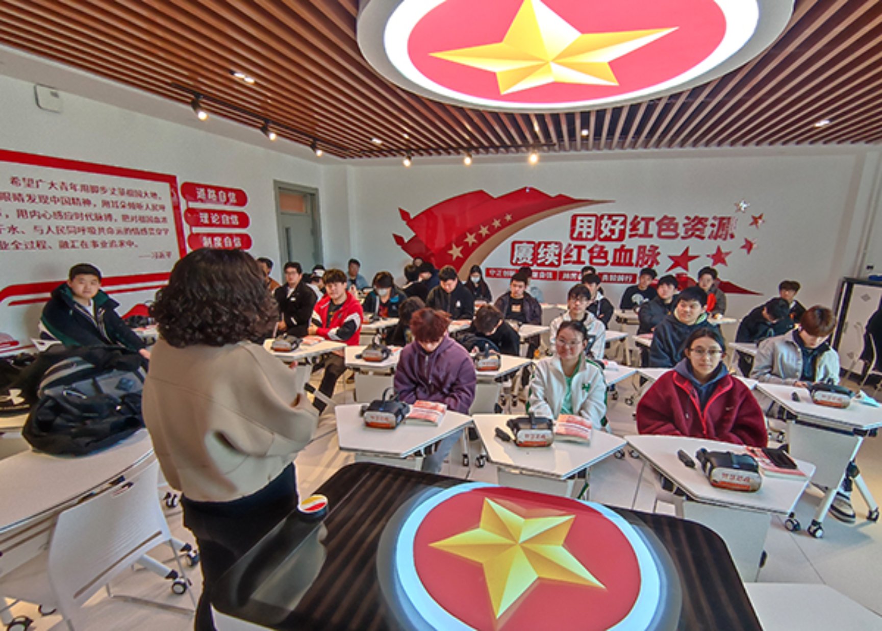 日前,馬克思主義學(xué)院思政課虛擬仿真體驗(yàn)教學(xué)中心正式投入使用。利用數(shù)字化虛擬仿真技術(shù)和思政體驗(yàn)課程,主動(dòng)適應(yīng)數(shù)字化時(shí)代大學(xué)生的學(xué)習(xí)方式和特點(diǎn),讓學(xué)生在“視聽(tīng)觸”的虛擬仿真環(huán)境中“沉浸式”體驗(yàn)中國(guó)共產(chǎn)黨百年輝煌歷程,完成“不同凡響”的思政課學(xué)習(xí)體驗(yàn)。